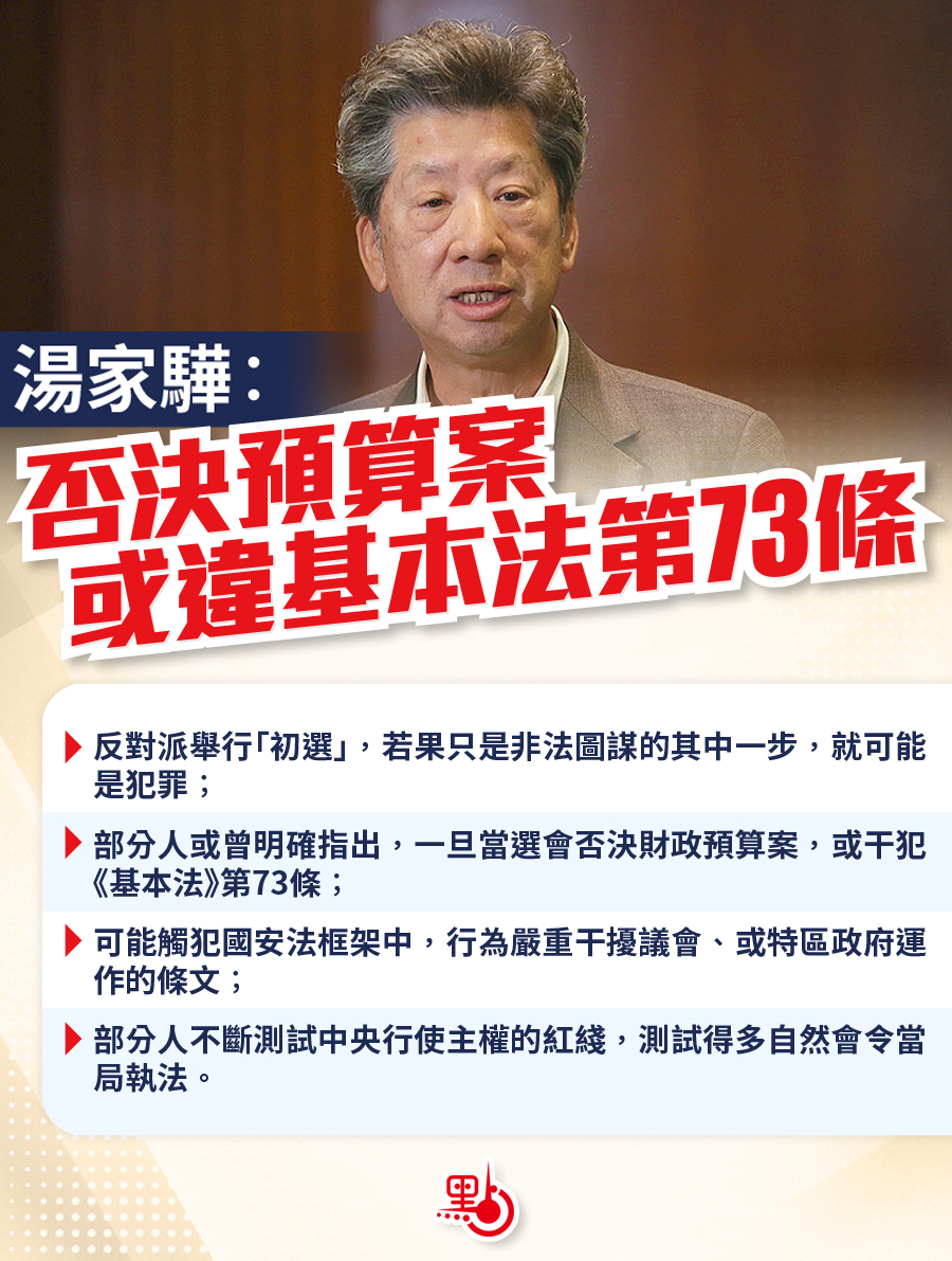 湯家驊:否決預算案或違基本法第73條