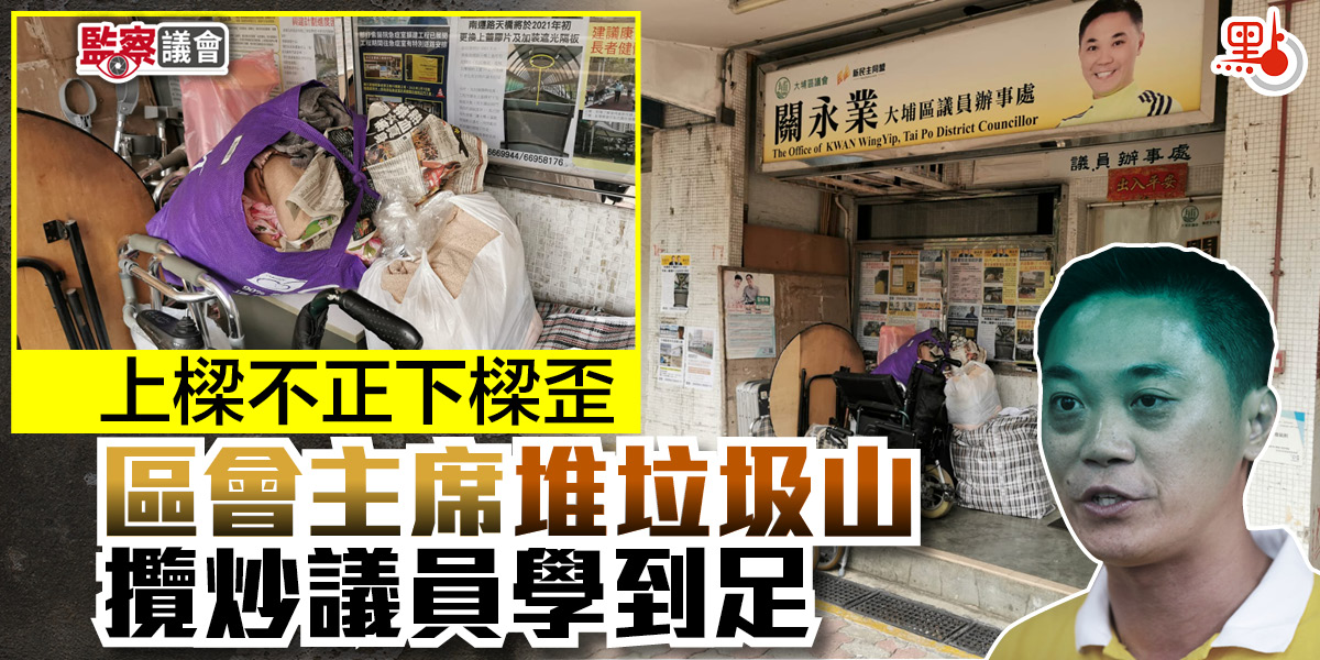 點新聞早前報道攬炒派大埔「超級垃圾議員」區鎮樺在辦事處外團積大量雜物,雜物之多足足有10平方米之廣,引起市民嘩然,消息報道後點新聞再有大埔區讀者報料,原來垃圾雜物到處放是大埔區攬炒派的「傳統」,連現任的大埔區議會主席、攬炒派「新民主同盟」成員關永業同樣習慣將垃圾雜物放於公眾地方,被批評「上樑不正下樑歪」。