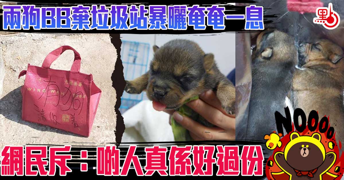 兩狗BB棄垃圾站暴曬奄奄一息 網民斥:啲人真係好過份