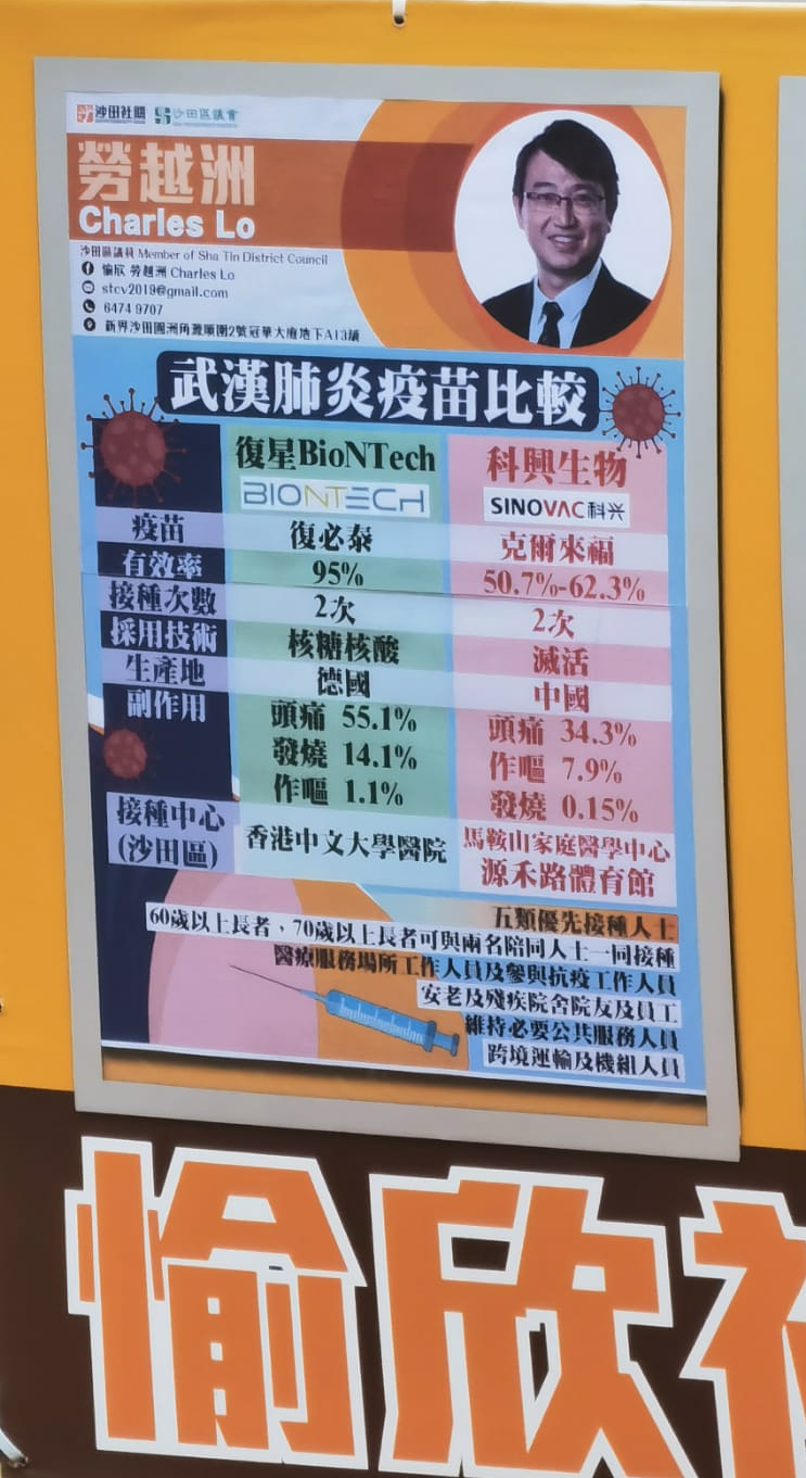 據了解,攬炒派沙田區議員勞越洲近日在社交平台上載一張有關肺炎疫苗的海報,其中海報全文以「武漢肺炎」,而非用官方名稱「COVID-19」或「新冠肺炎」,被質疑以污名化名稱散播歧視思維。