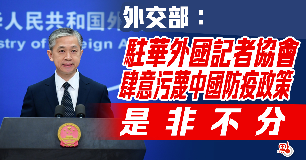 外交部:駐華外國記者協會肆意污蔑中國防疫政策 是非不分
