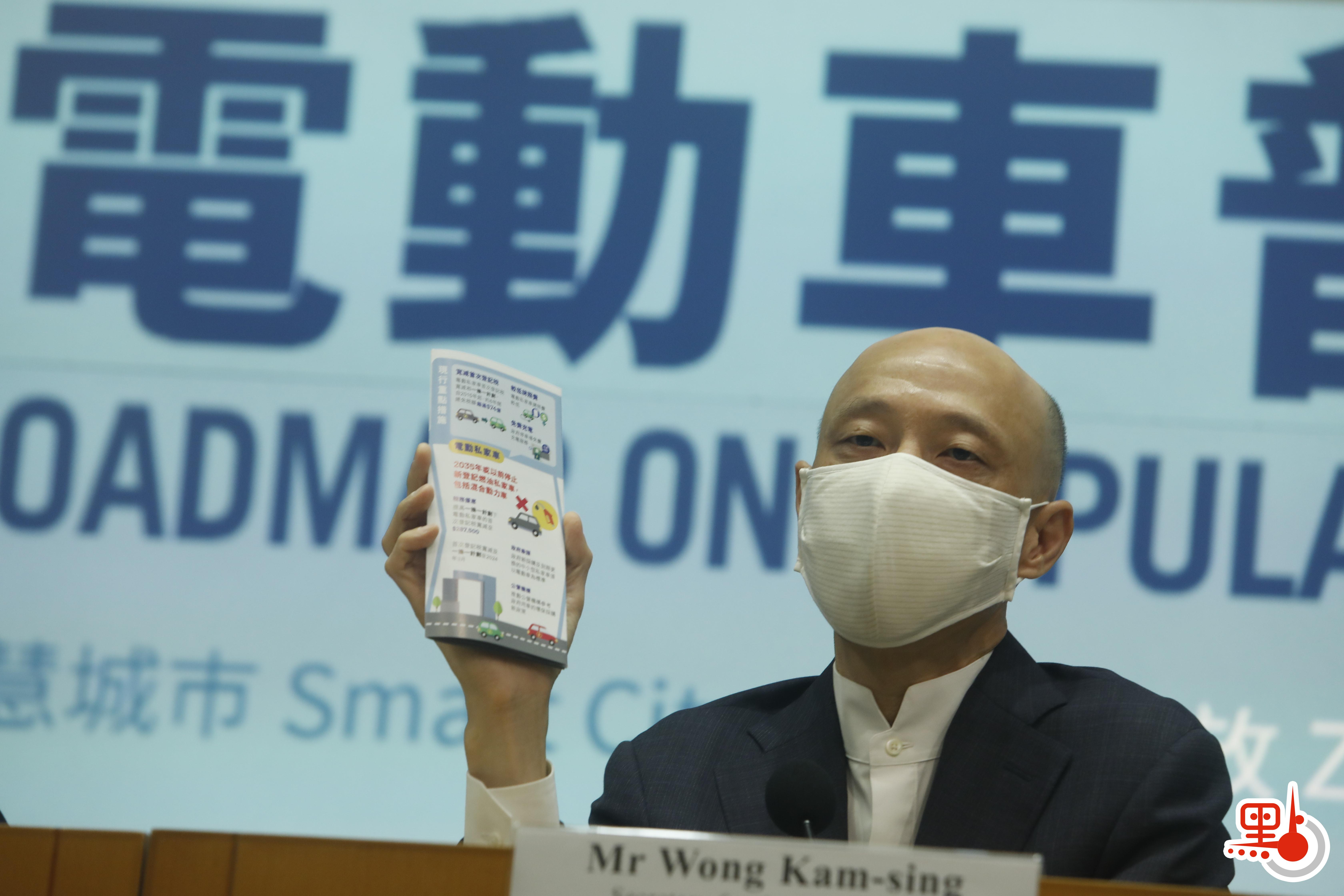 環境局今日(17日)公布電動車普及化路線圖,環境局局長黃錦星表示,計劃願景是「零碳排放、清新空氣、智慧城市」,目標是2050年前達致車輛零排放,而2035年前政府會停止新登記燃油車輛,以配合香港達成2050年前碳中和目標。政府所有新購及到期更換的中小型私家車,會以電動車為標準,為社會作示範牽頭作用。
