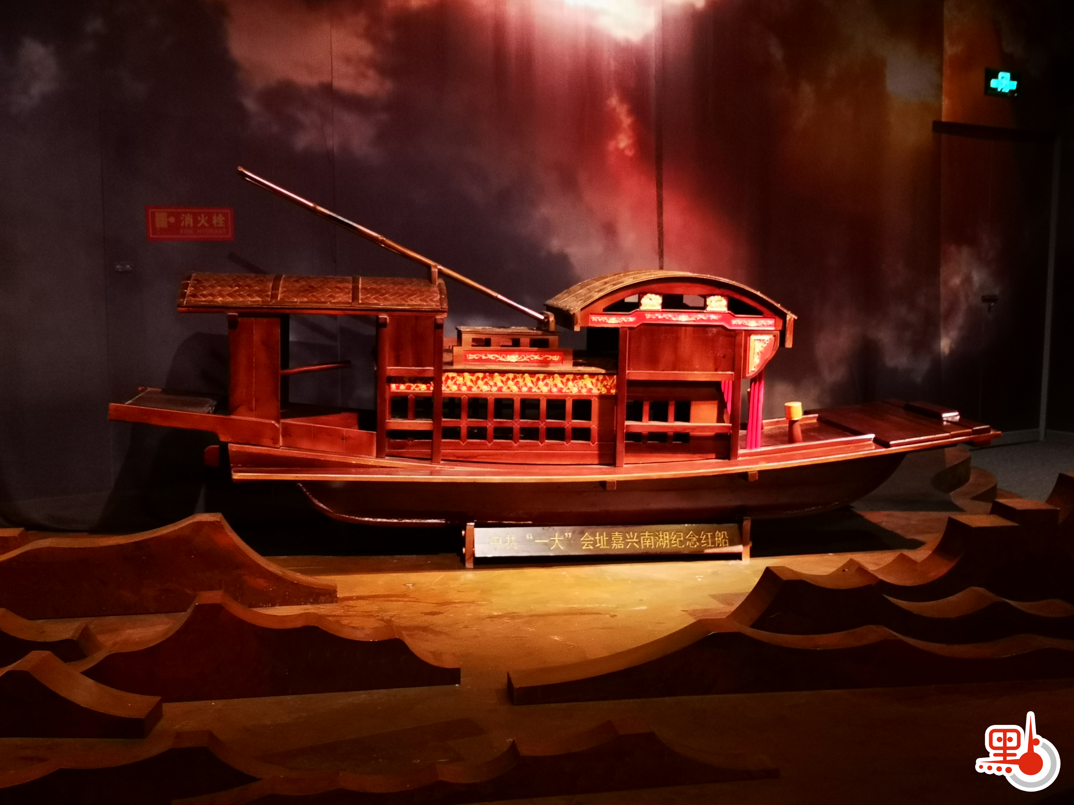 在介紹中共一大召開曲折過程的展區前,很多觀眾駐足觀看寶貴的圖片和影像資料。1921年7月23日,中國共產黨第一次全國代表大會在上海召開,為躲避外國巡捕搜查,大會的最後一天轉移至浙江嘉興南湖的一艘遊船上舉行。本次展覽復原了嘉興紅船的模型,還原了當時的歷史場面。在展牆上播放的影片中,直接當事人王會悟講述了這段經歷。這次大會莊嚴宣告了中國共產黨的誕生。彭真於1991年3月登臨南湖紀念船時就曾說:「這船不大,但前途遠大,有了這艘船,才誕生了社會主義中華人民共和國。」