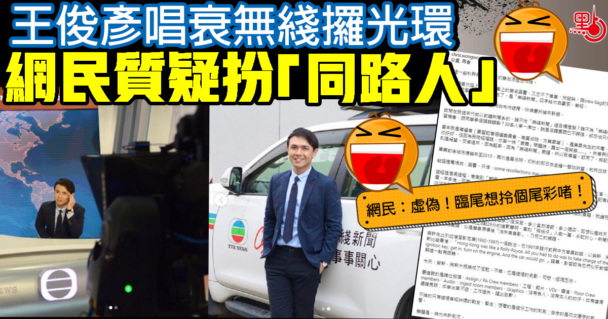 王俊彥唱衰無綫攞光環 網民質疑扮「同路人」