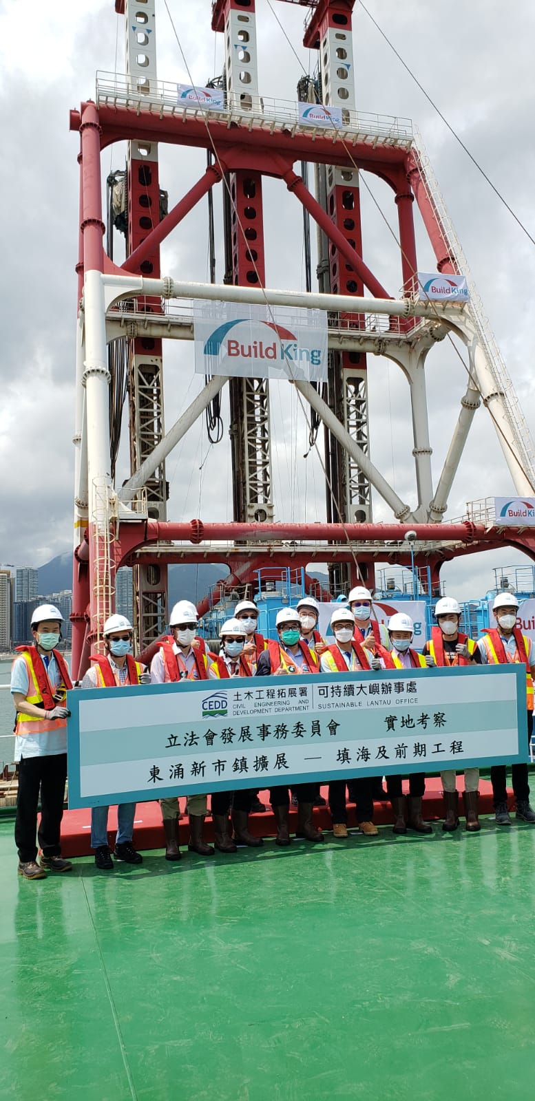 議員們穿戴上工地安全設備,到進行DCM的工程船上視察,進一步了解這填海技術的操作。盧偉國表示,過去自己已有兩次到DCM工程船視察的經驗,香港國際機場第三條跑道的填海工程也是採用了DCM技術,當時的效果同樣令人滿意,以環保技術填海造地,既利民生,又利經濟,值得支持,期待東涌擴展工程順利進行,早日為市民住房與就業,提供新的機遇。