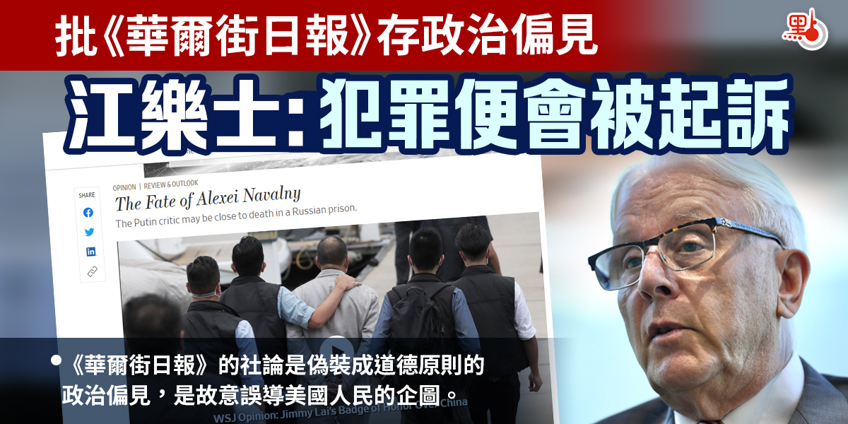 批《華爾街日報》存政治偏見 江樂士:犯罪便會被起訴