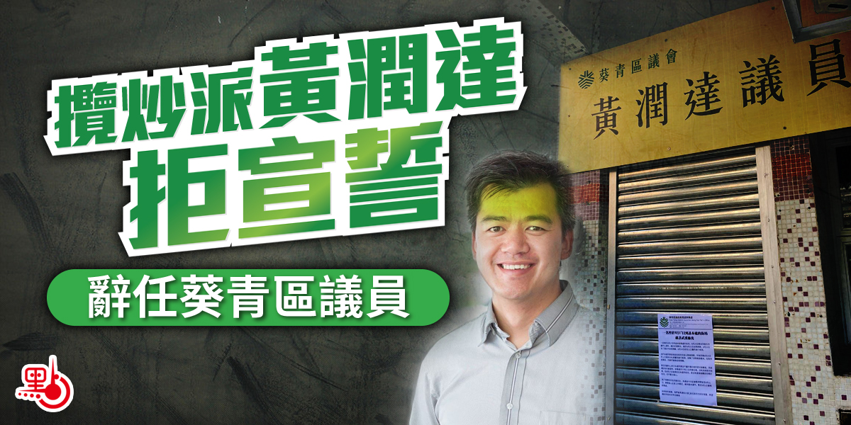 攬炒派黃潤達拒宣誓 辭任葵青區議員