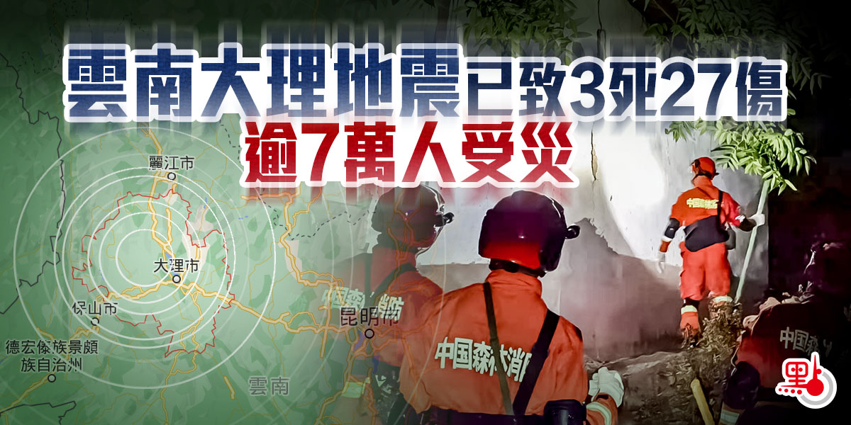雲南大理州漾濞縣昨日(21日)晚9時發生6.4級地震,现已造成3人死亡,27人受傷,部分人重傷。其中漾濞县死亡2人,轻伤23人,重伤3人;永平县死亡1人;大理市轻伤1人。