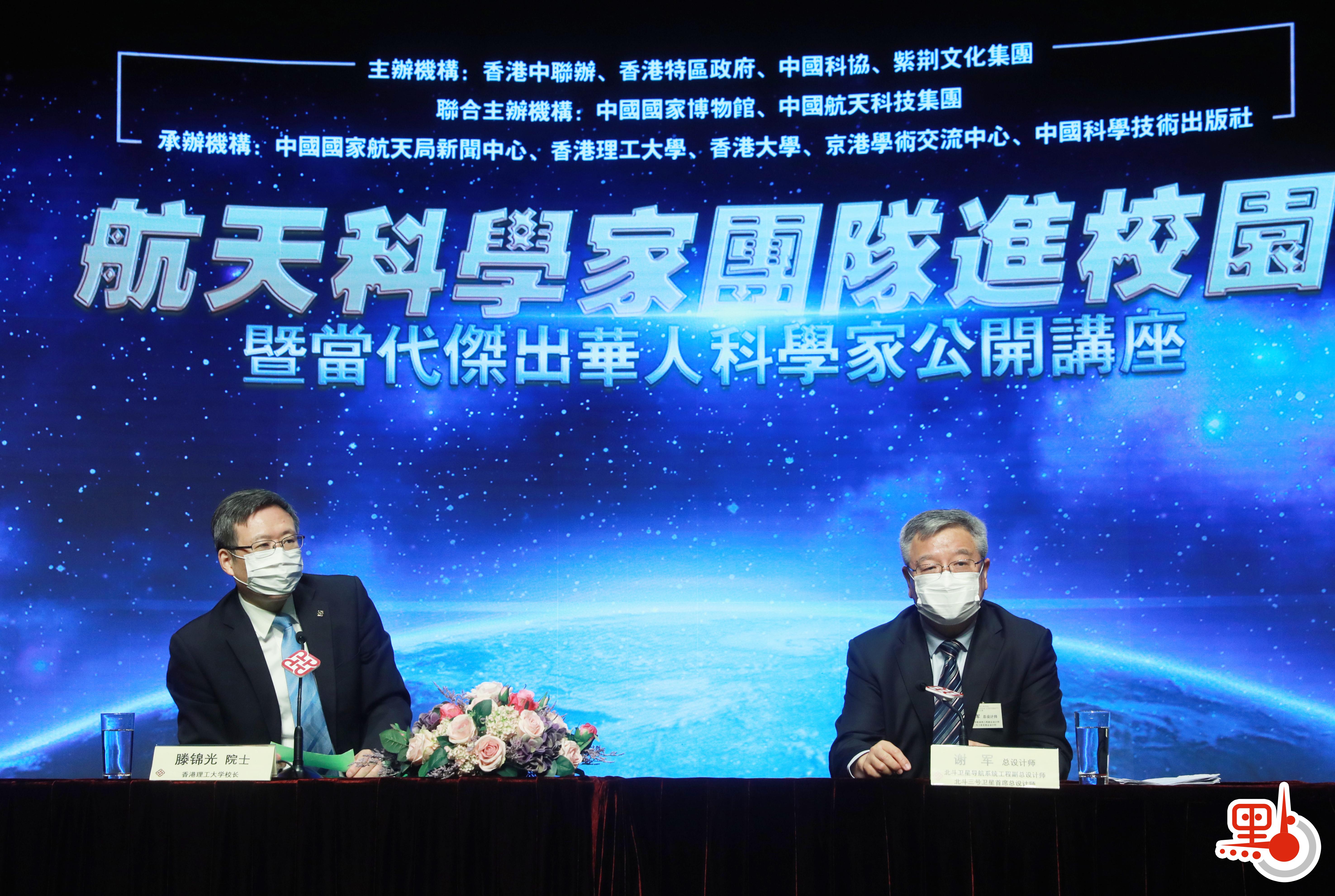 航天科學家團隊進校園暨當代傑出華人科學家公開講座活動「中國航天與航天精神」今天(24日)繼續舉行。北斗衛星導航系統工程副總設計師、北斗三號衛星首席總設計師謝軍上午在香港理工大學作題為《仰望星空 北斗璀璨》的演講。