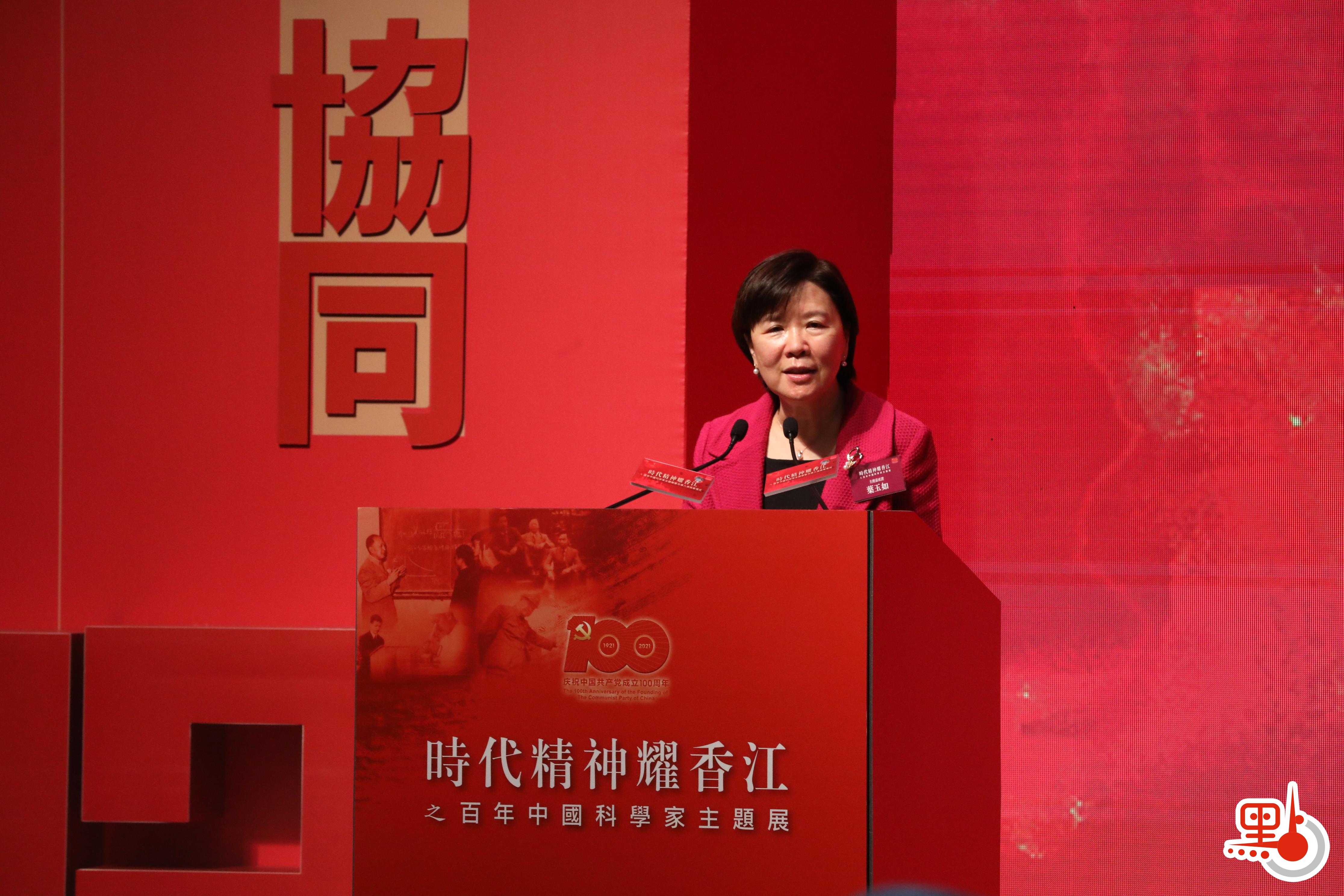 葉玉如指出,現在國家構建新發展格局、深化粵港澳大灣區建設、實施「十四五」規劃,都為香港創造了不容錯失的重大發展機遇。香港正在主動對接國家戰略規劃,更加積極和深入地參與國家的創新及科技發展,香港科學家要勇挑重擔,努力推動香港科技發展上一個新台階。她續指,要鼓勵更多的年輕人投身到科研工作中來。相信這次展覽可以喚起香港市民,特別是年輕人對創新科技的關注,增強他們的國家意識和愛國精神,鼓勵更多的年輕人從事科研工作。