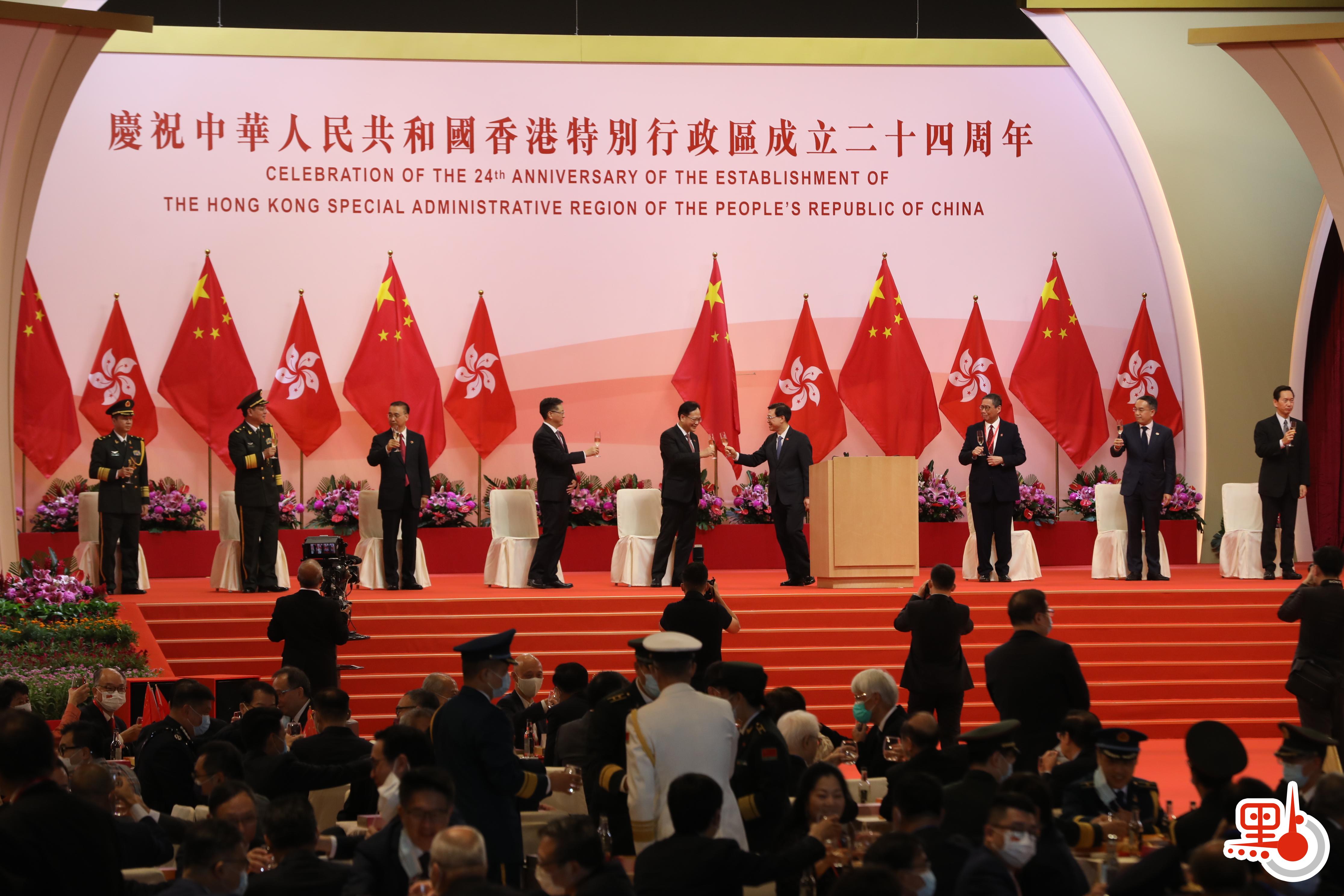 李家超又指,今年七一亦是慶祝中國共產黨成立100周年重大日子,社會應該對在中共領導下提出及實行的「一國兩制」有更根深體會。他指出,中央過去24年一直堅定不移在香港貫徹落實「一國兩制」。2019年下半年出現黑暴,以及反中亂港勢力意圖用特區選舉制度漏洞癱瘓政府施政,甚至奪取管治權,阻撓香港融入國家發展大局,令香港面對前所未有挑戰,中央仍毫不動搖,一年內先後就國安法立法,以及完善特區選舉制度,確保愛國者治港,令香港社會由亂轉治。