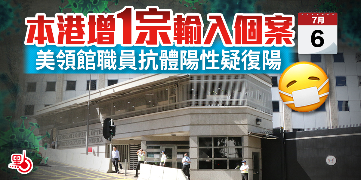 - 本港增1宗輸入個案 美領館職員抗體陽性疑復陽