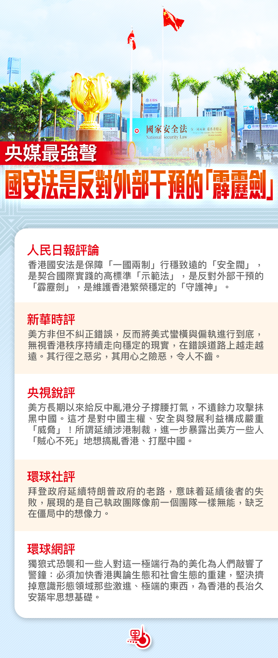 一圖 | 央媒最強聲 國安法是反對外部干預的「霹靂劍」