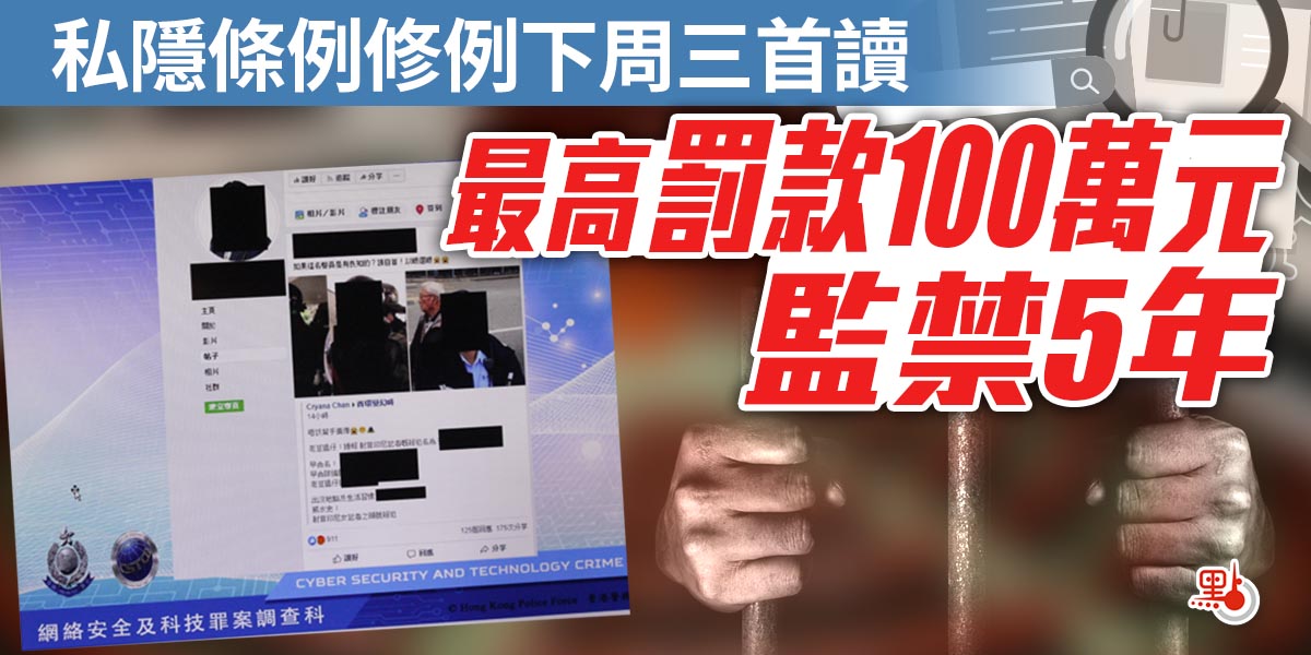 私隱條例修例下周三首讀 最高罰款100萬元監禁5年