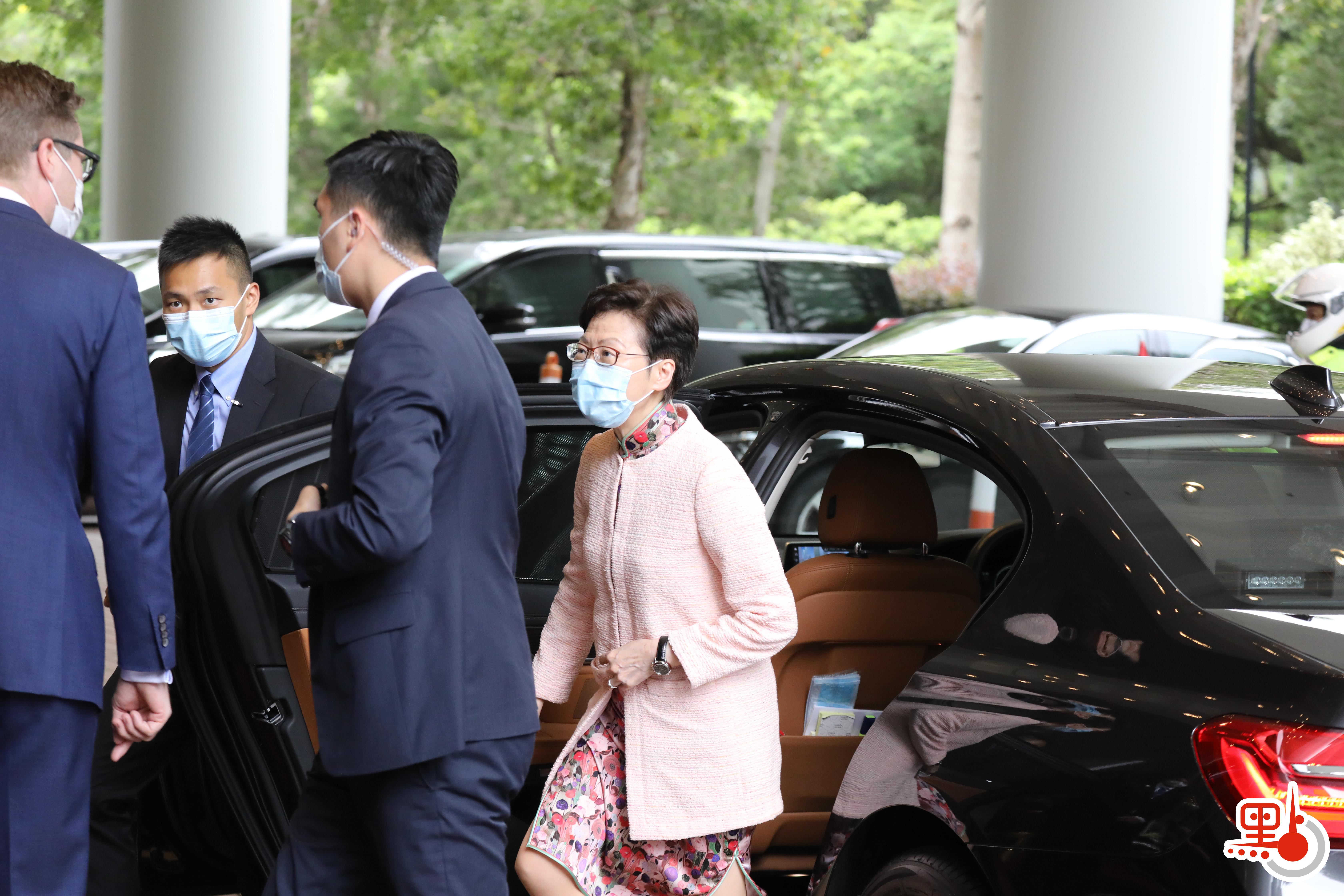 全國港澳研究會今日(16日)早上舉行國安法實施一周年研討會,主題為「國安法實施一周年回顧與展望」。行政長官林鄭月娥、中聯辦主任駱惠寧、政務司司長李家超、財政司司長陳茂波、律政司司長鄭若驊、保安局局長鄧炳強,以及基本法委員會副主任譚惠珠等,抵達位於香港的會場。