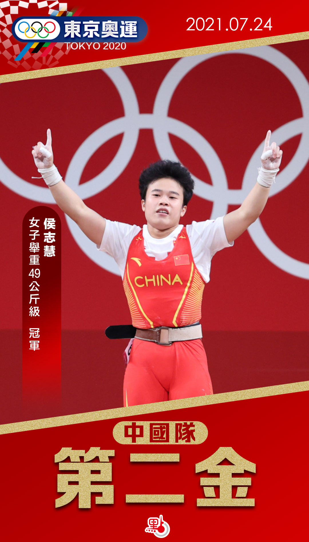 今日(24日)是東京奧運開幕後首個正式比賽日,繼國家隊射擊選手楊倩在女子10米氣步槍奪得今屆奧運首面金牌後,在舉重女子49公斤級別,中國隊世界紀錄保持者侯志慧,以總成績210公斤,為中國奪得今屆奧運第二面金牌,她同時刷新抓舉、挺舉和總成績三項奧運會紀錄。