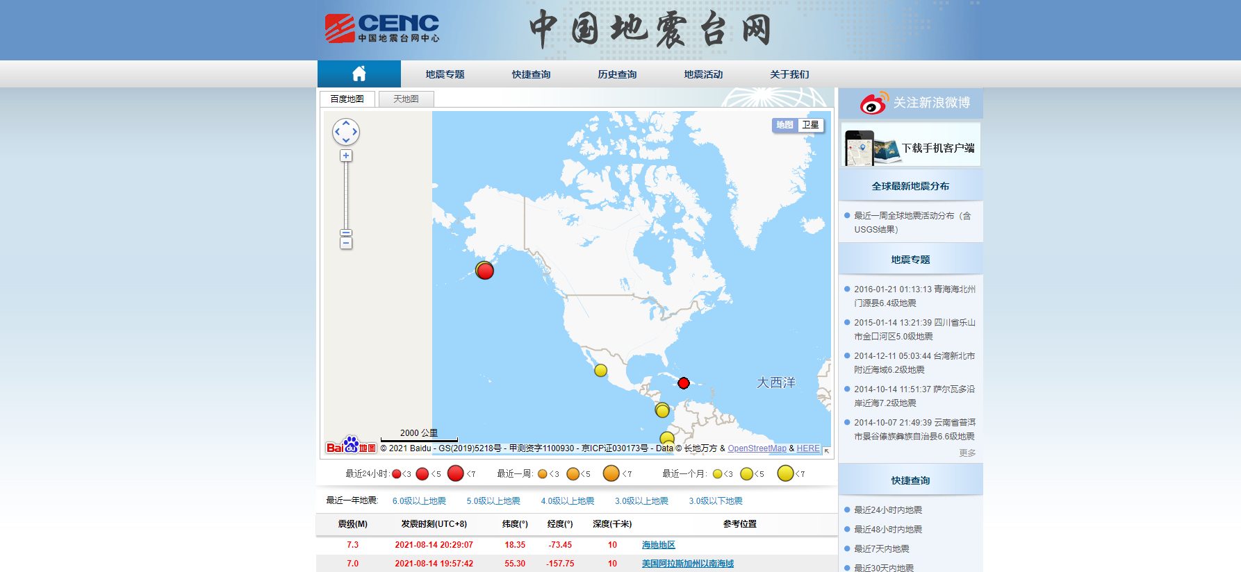 據中國地震台網正式測定,8月14日20時29分,在海地地區(北緯18.35度,西經73.45度)發生7.3級地震,震源深度10千米。