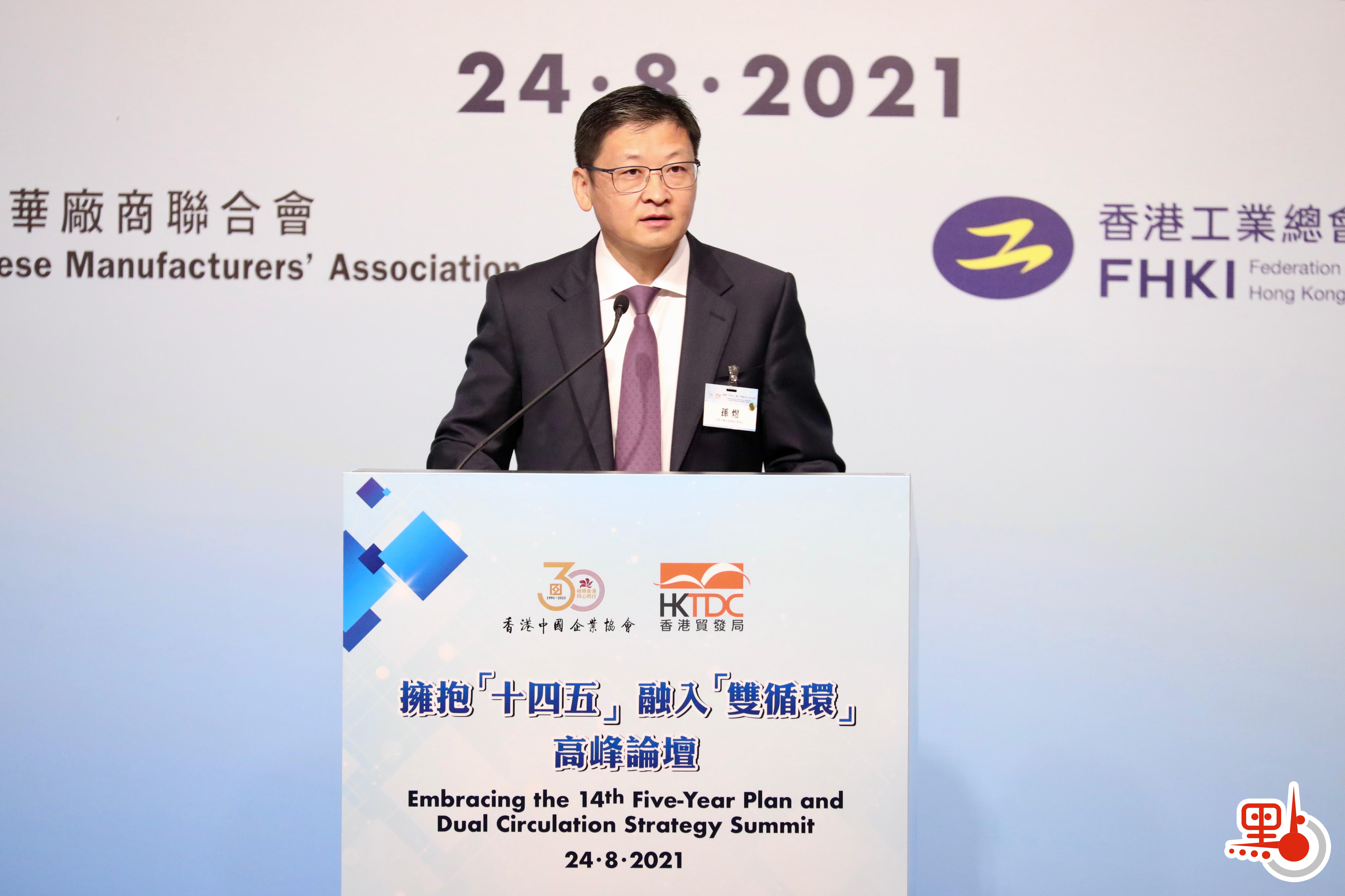 由香港中國企業協會、香港貿易發展局聯合主辦的「擁抱『十四五』 融入『雙循環』」高峰論壇,於今日(24日)上午在香港會議展覽中心舉辦。香港中國企業協會名譽會長孫煜致辭表示,香港的發展一直與內地緊密相連,國家堅持高質量發展,推動高水平對外開放,必將為香港帶來新的機遇和動力,如何發揮「一國兩制」獨特優勢,把握「十四五」規劃和「雙循環」戰略機遇,積極融入國家發展大局,應是工商界關注的重點。