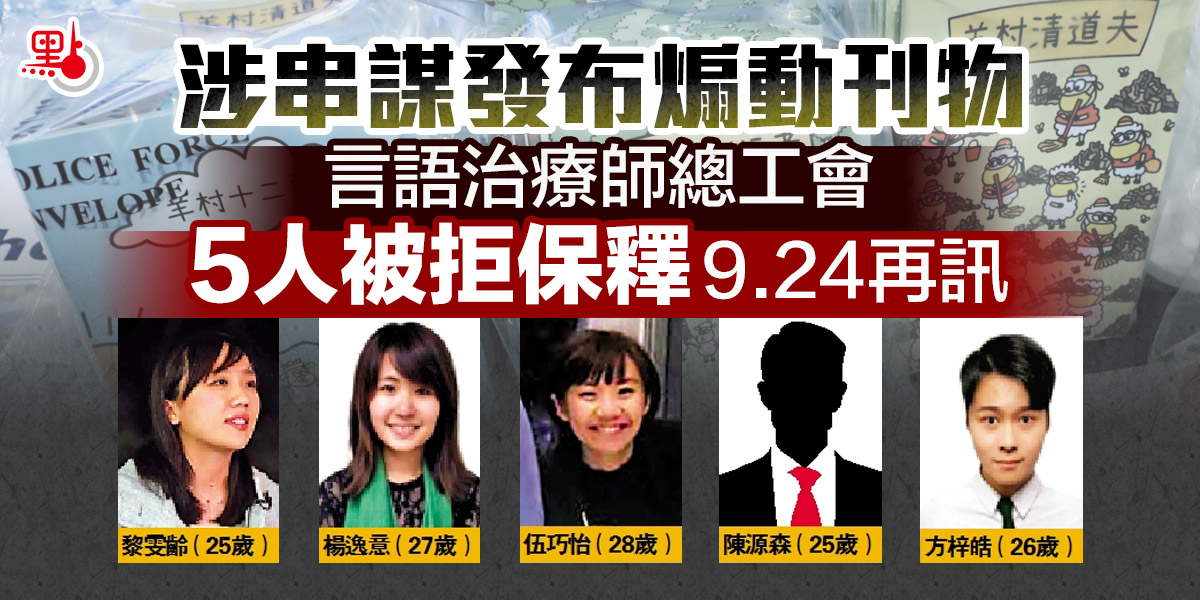 涉串謀發布煽動刊物 言語治療師總工會5人被拒保釋9.24再訊