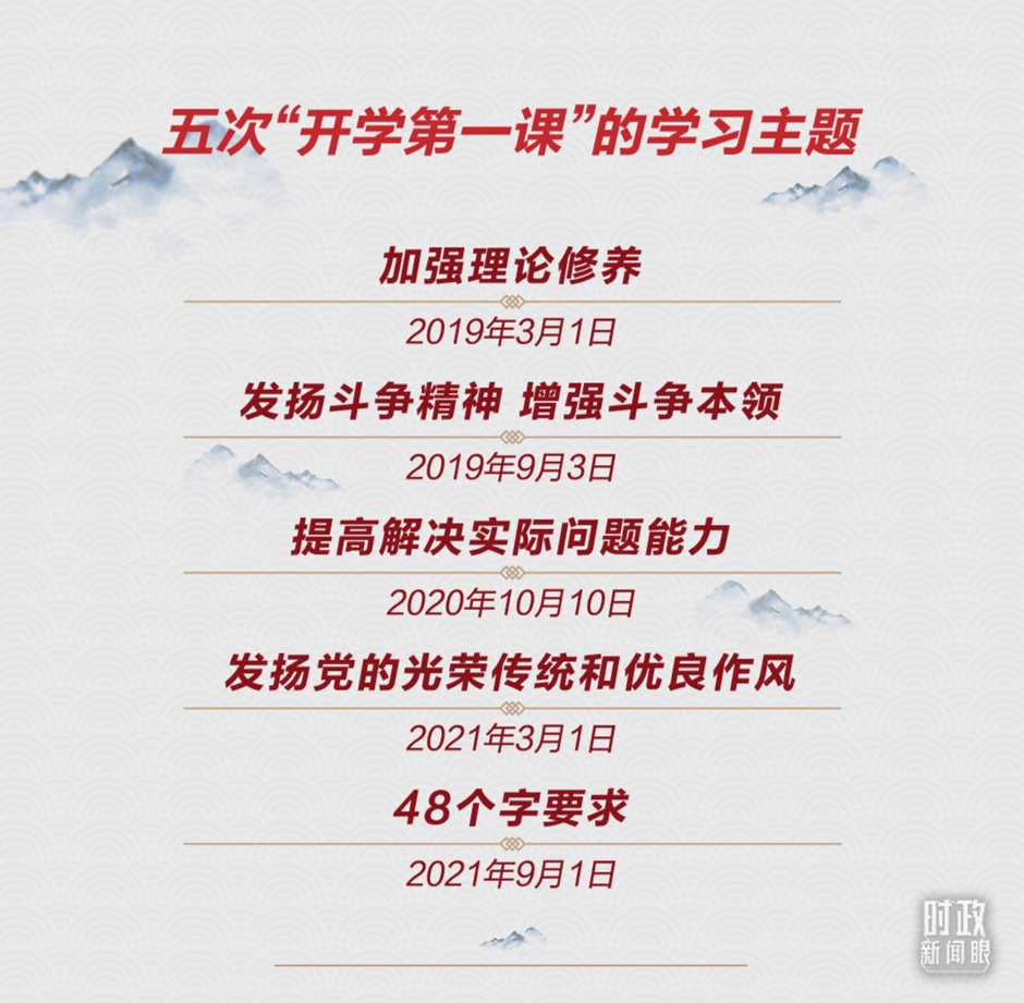 這五堂課聽下來,又具有很強的系統性。今年秋季的開學第一課,是「專題課」基礎上的「綜合課」,可謂「集大成」。總書記對年輕幹部提出了48個字的要求,涵蓋六大方面。