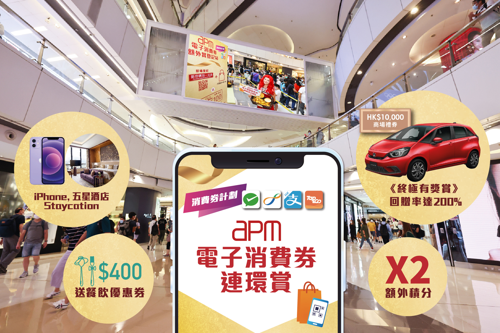 新鴻基地產代理執行董事馮秀炎表示,隨着本地疫情穩定受控,電子消費券繼續為市面提供正面動力。apm今年秋日宣傳推廣費逾380萬元, 當中配合電子消費券第二期即將發放, 消費優惠及線上媒體推廣較以往增長50%。加推獨特互動體驗及密集式的速銷活動, 如消費換咖啡市集通行証、五星級月餅、高達200% 電子購物優惠券回贈,每月還舉行大抽獎,有機會贏iPhone 12、過萬元商場禮券、豪華家庭車等 , 還有夥拍逾100個人氣品牌推「秋日感謝『折』」, 約1,000件潮流產品低至1元震撼價換購及網上購物平台。預料消費氣氛將持續向好,中秋推廣高峰期 apm商場人流及生意可按年增升20%至30%。」