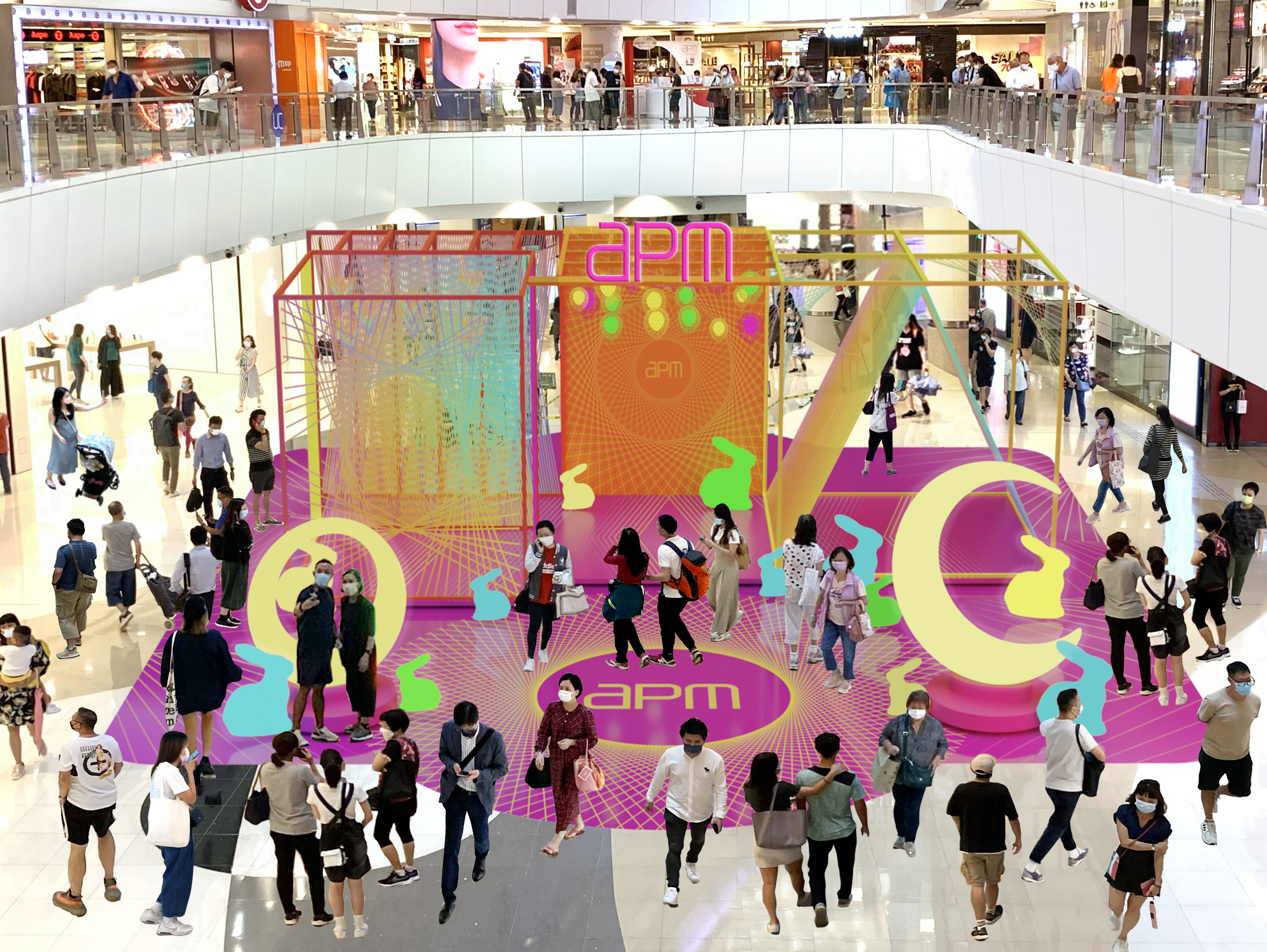 新地代理有限公司副總經理(推廣)李少芬指,配合數碼科技新發展及新世代顧客需求,今年中秋裝置亦加入了創意光影科技元素, 與波蘭藝術團隊合作打造全港首個「apm幻彩光影展』,利用萬條螢光彩繩交織巨型藝術裝置及多個好玩互動景點, 又開設品味咖啡市集, 引入科技、潮玩協作伙伴,加強新奇、互動、趣味元素, 為大家帶來創意消費新體驗。