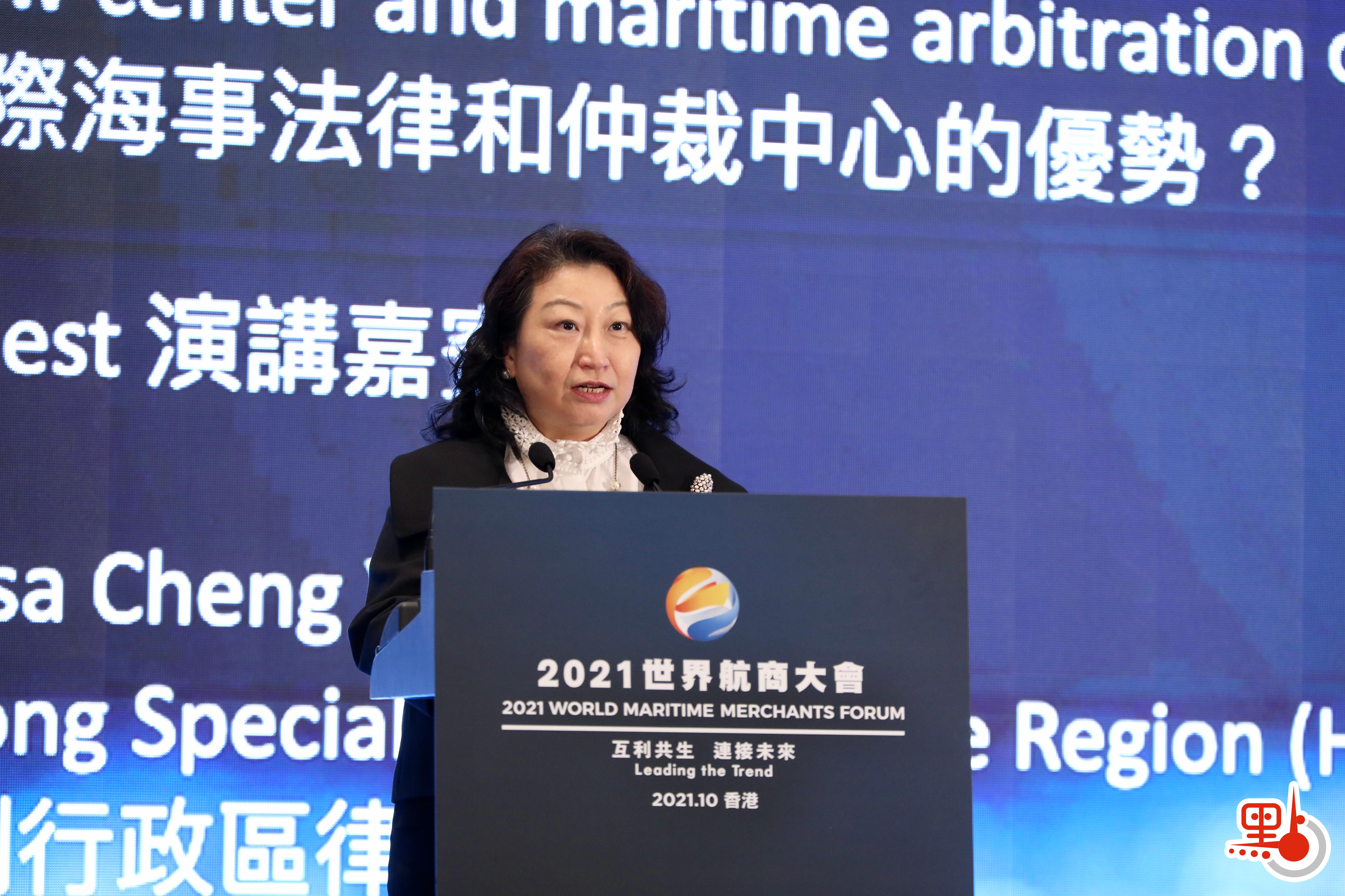 首屆世界航商大會今日(20日)在香港舉行。本屆大會以「互利共生、連接未來」為主題,旨在進一步促進行業上下游密切聯繫,積極推動航運產業鏈的轉型升級。香港律政司司長鄭若驊在大會上以「如何發揮香港作為國際海事法律和仲裁中心的優勢」為題,發表演講。她在致辭中說,香港的航運地位不可或缺,尤其在法律和仲裁方面更為獨特,值得好好利用。