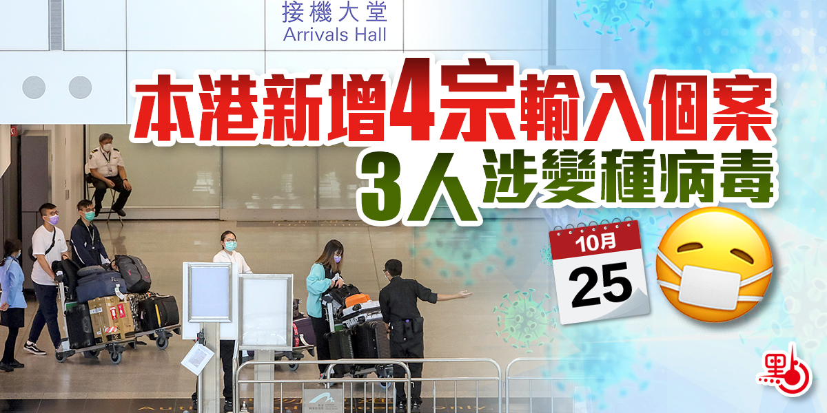 本港新增4宗輸入個案 3人涉變種病毒