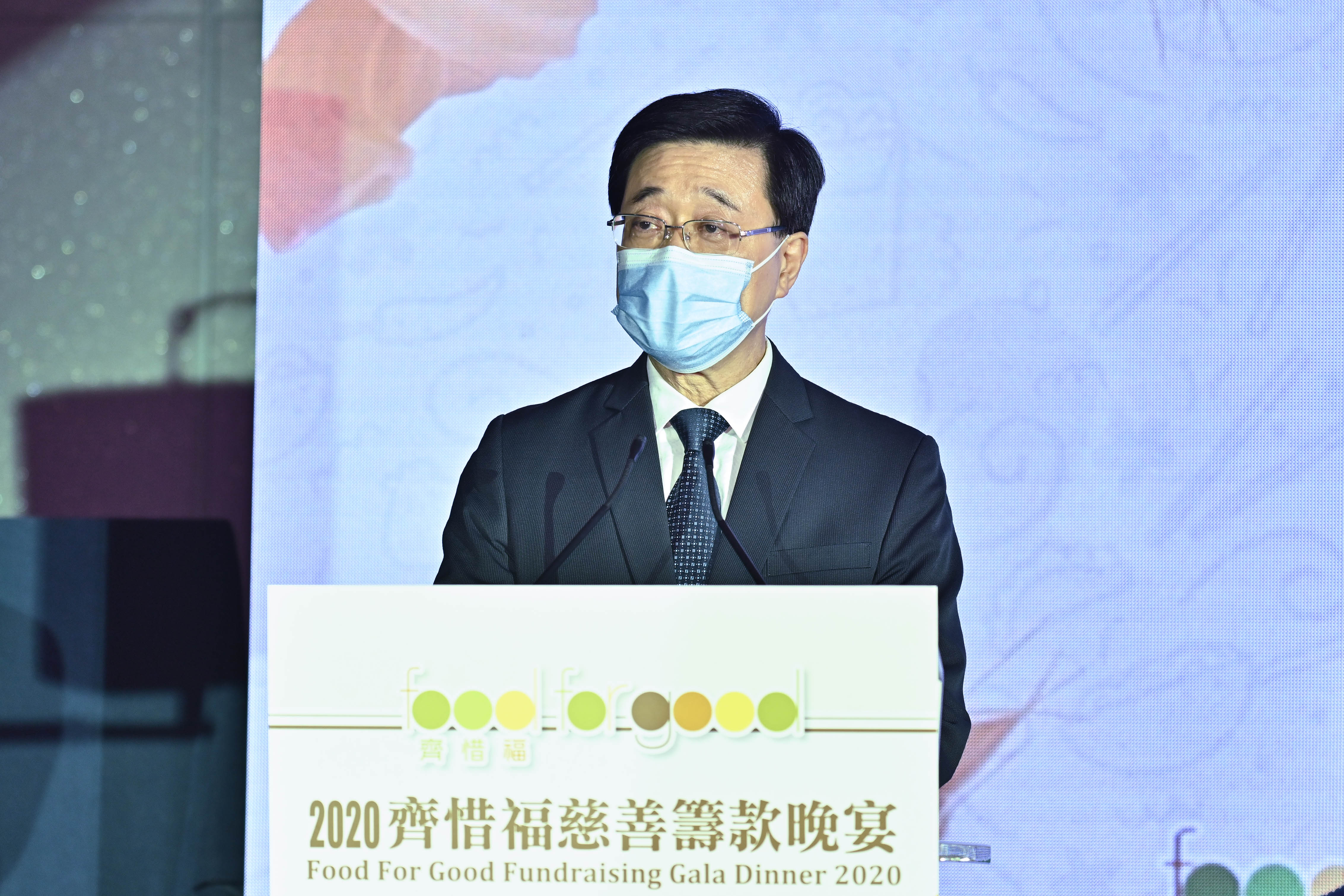 政務司司長李家超今日(11月1日)出席2020齊惜福慈善籌款晚宴,他在致辭時表示,廚餘是香港都市固體廢物中的最大成分,佔大約三成,現首要目標是促進社會各界,從源頭避免及減少產生廚餘。