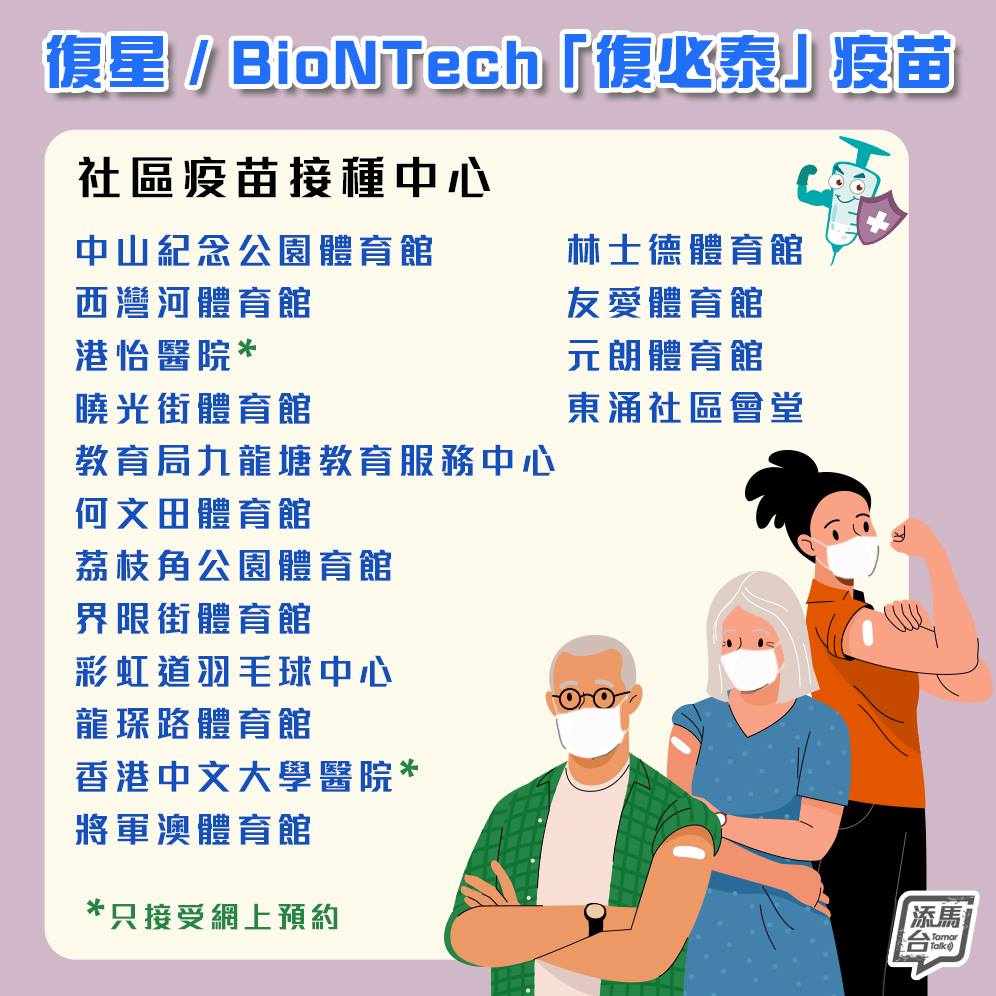 - 設於7間公立醫院的新冠疫苗接種站(無須預約)