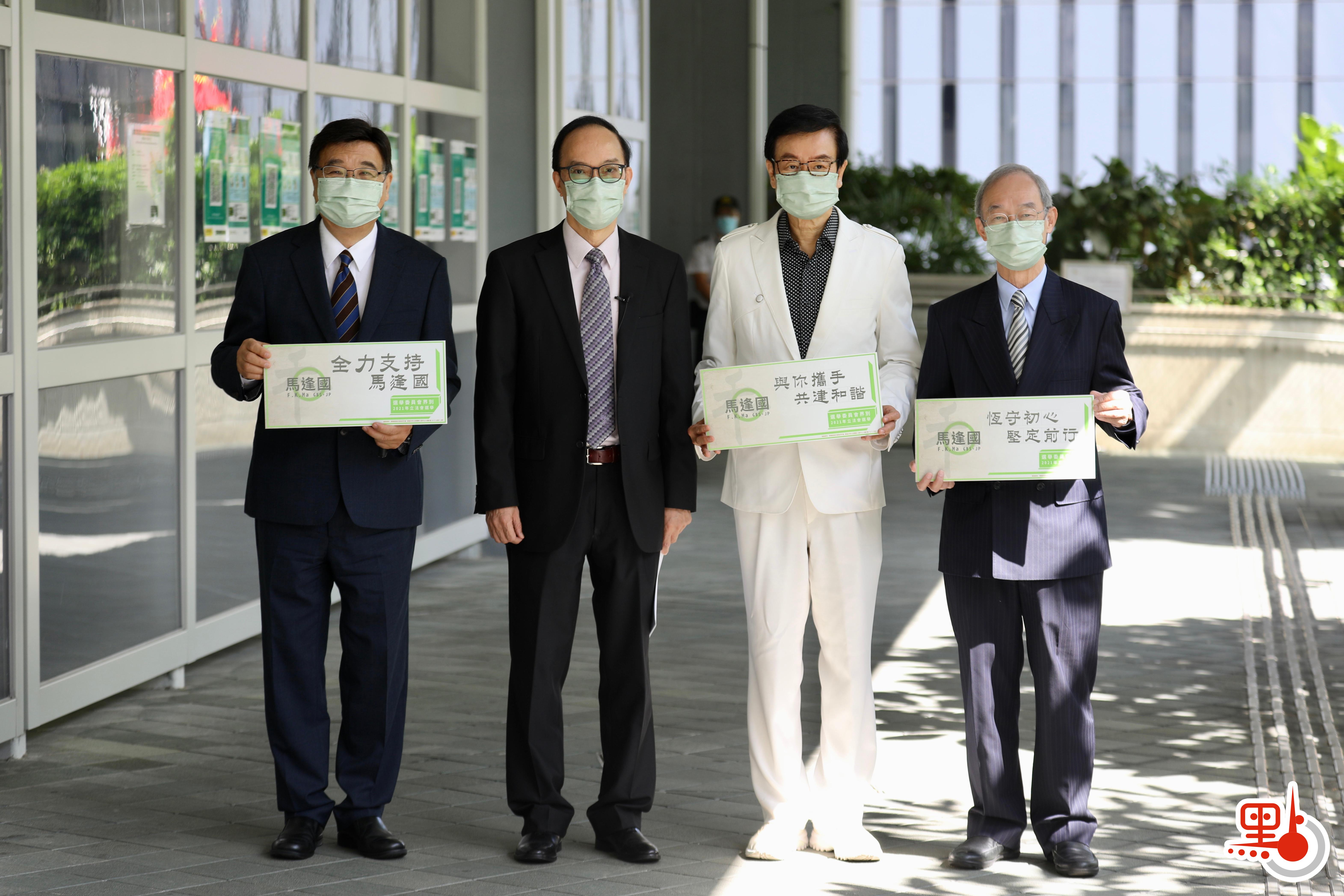 第六屆立法會議員、港區全國人大代表馬逢國今日(6日)在港區全國人大代表盧瑞安和黃玉山、著名導演黃百鳴的陪同下,以「恆守初心、堅定前行、與您攜手、共建和諧」為口號,報名參選立法會選舉委員會界別。