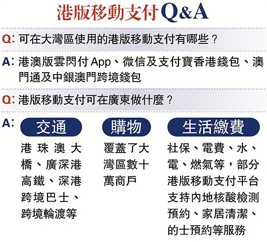 11月4日,廣東省印發了「關於以新業態新模式引領新型消費加快發展的實施意見」,除了提及支持港澳版跨境移動支付工具在粵港澳大灣區互通使用外,還提及將組織支付服務市場主體大力推進消費電子支付市場建設,減免商戶交易手續費和支付終端費。預料未來港澳消費者到大灣區內地城市消費,將能享受到更多商戶提供的服務。