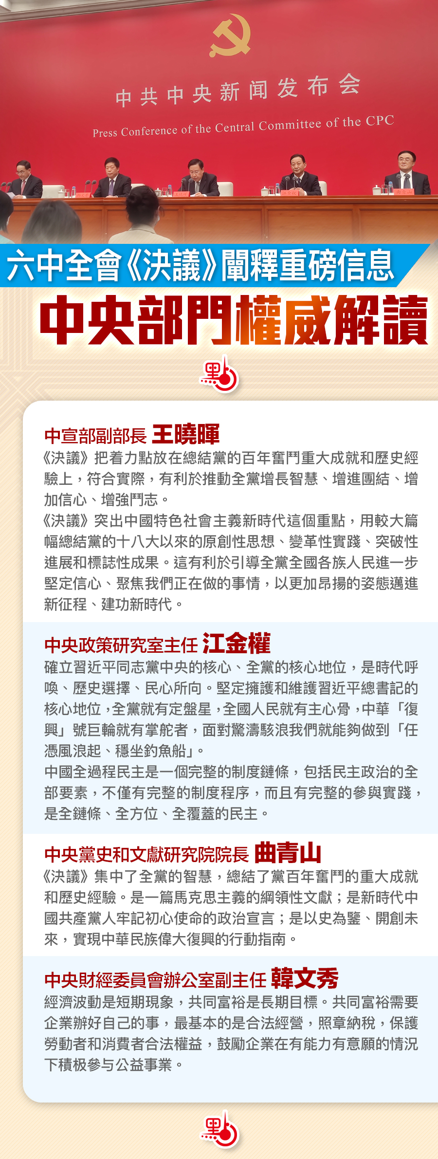 一圖|六中全會《決議》闡釋重磅信息 中央部門權威解讀
