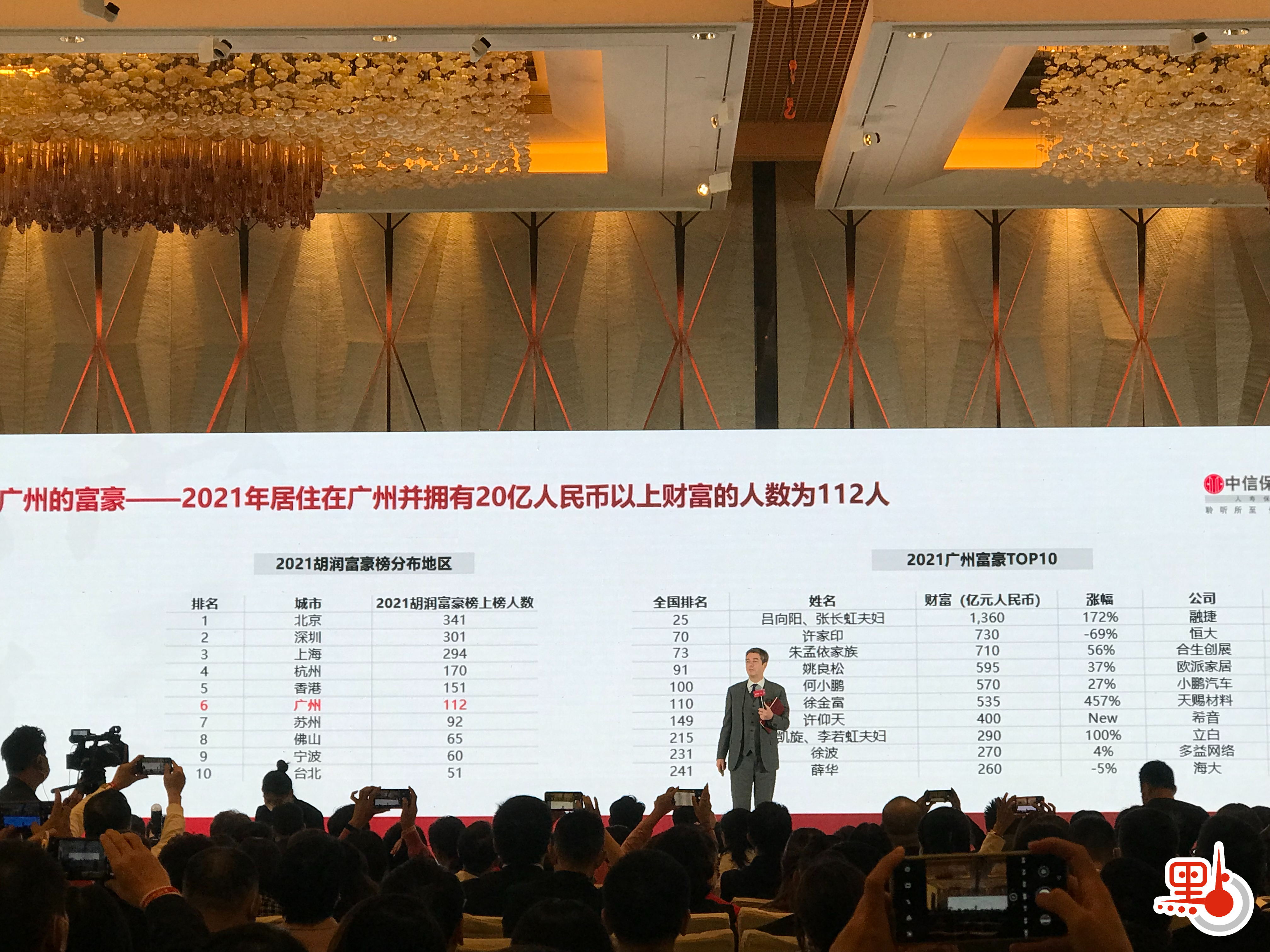 粵港澳大灣區創富效應不減,廣州、深圳、香港等核心城市表現突出。點新聞記者從昨日(14日)在廣州舉行的胡潤百富2021中國高凈值人群家族安全報告發布會上獲悉,中國擁有600萬元(人民幣,下同)家庭凈資產的「富裕家庭」已達到501萬戶,比上年增7萬戶;擁有1000萬元以上家庭凈資產的「高凈值家庭」達到202萬戶,增4萬戶。廣深港三大城市高凈值家庭總量達到36.8萬戶,佔全國的18.2%。儘管受新冠肺炎疫情影響,香港的高凈值家庭數量仍逆市上漲,達到22.3萬戶,高居大灣區之首。