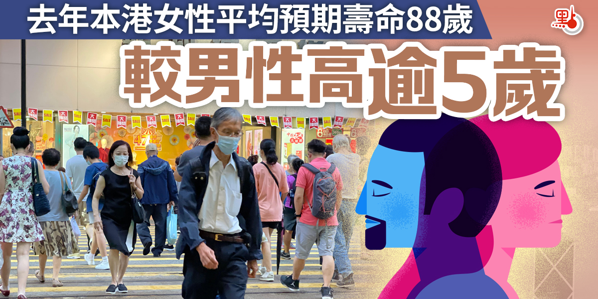 去年本港女性平均預期壽命88歲 較男性高逾5歲