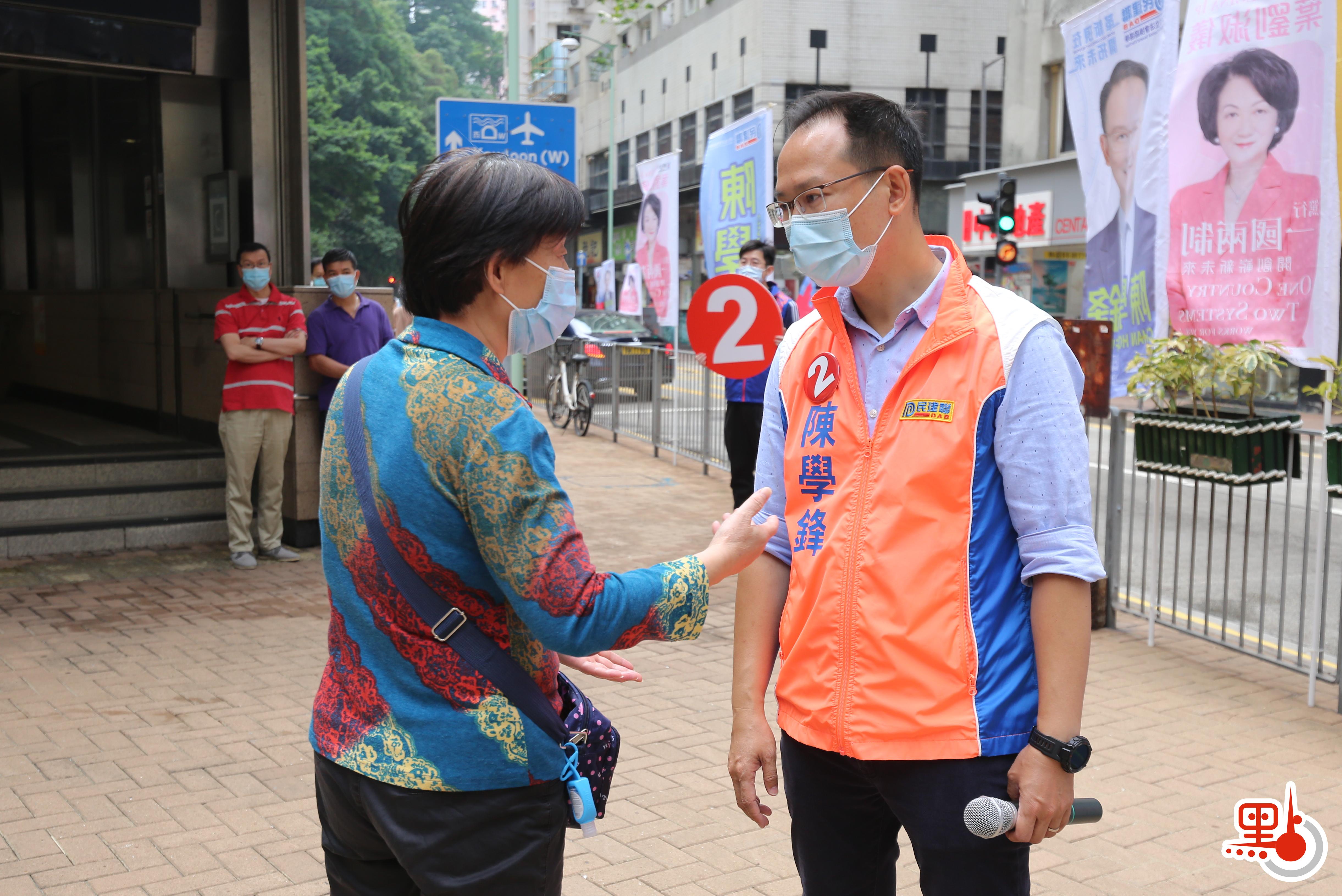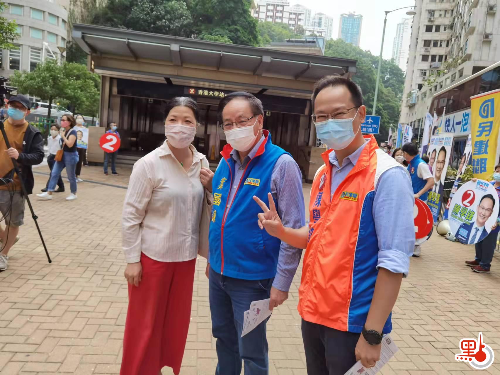 2021年立法會換屆選舉將於12月19日舉行,同為港島西候選人的民建聯副主席陳學鋒、新民黨主席葉劉淑儀今日上午在卑路乍街,香港大學地鐵站外設立街站,呼籲市民踴躍投票,支持落實「愛國者治港」。