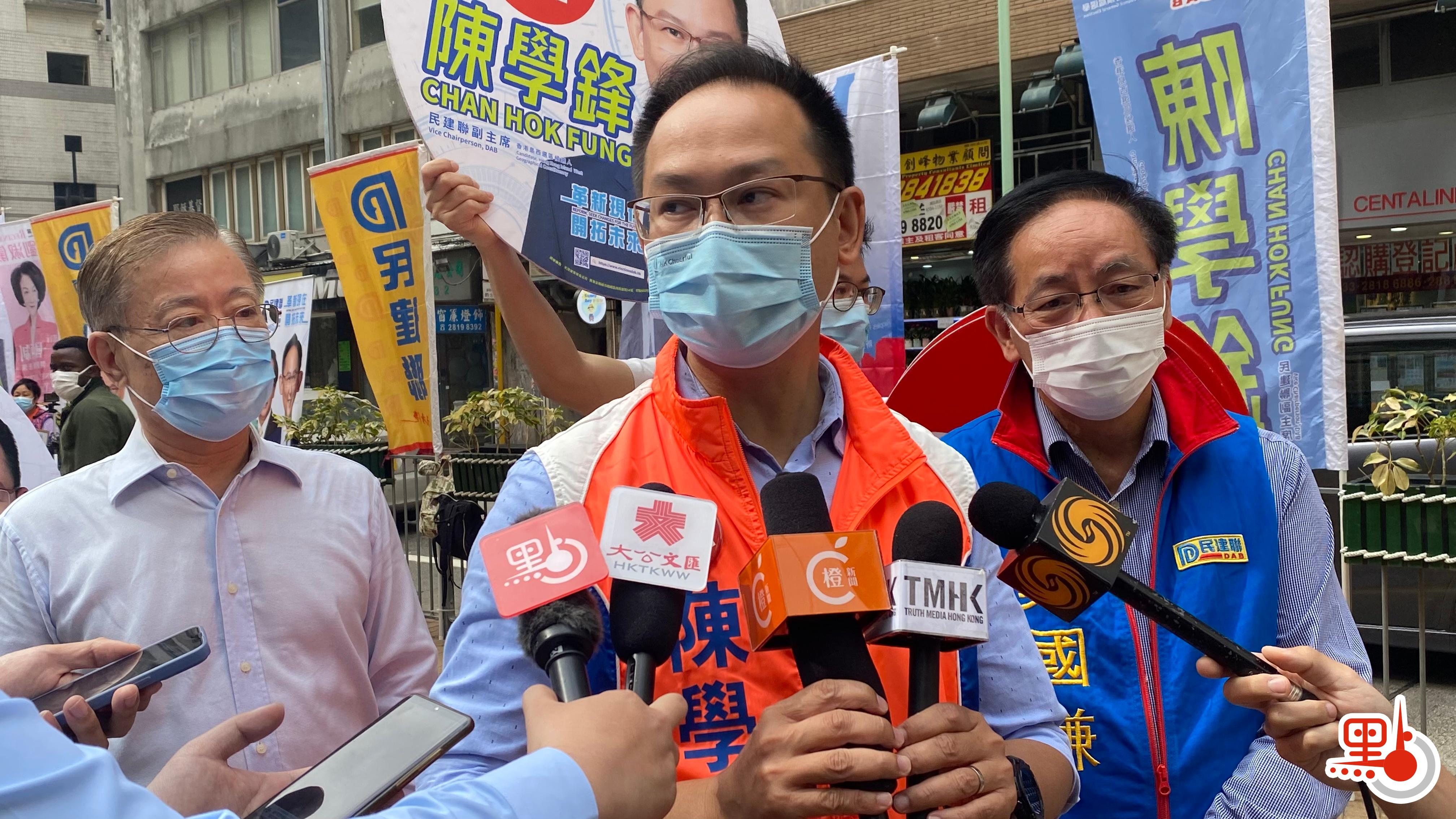 陳學鋒表示,在新選舉制度下港島西選區範圍涵蓋中西區、南區及離島,範圍較大,而整個選舉工程時間較短,因此近期頻密「落區」,希望獲得支持。在最近的「落區」的過程中,他感受到市民對於選情開始有所關注,開始思考將選票投給誰,因此會更佳努力拉票。他指出,投票是表達意見的一種方式,呼籲市民踴躍投票,支持落實「愛國者治港」。