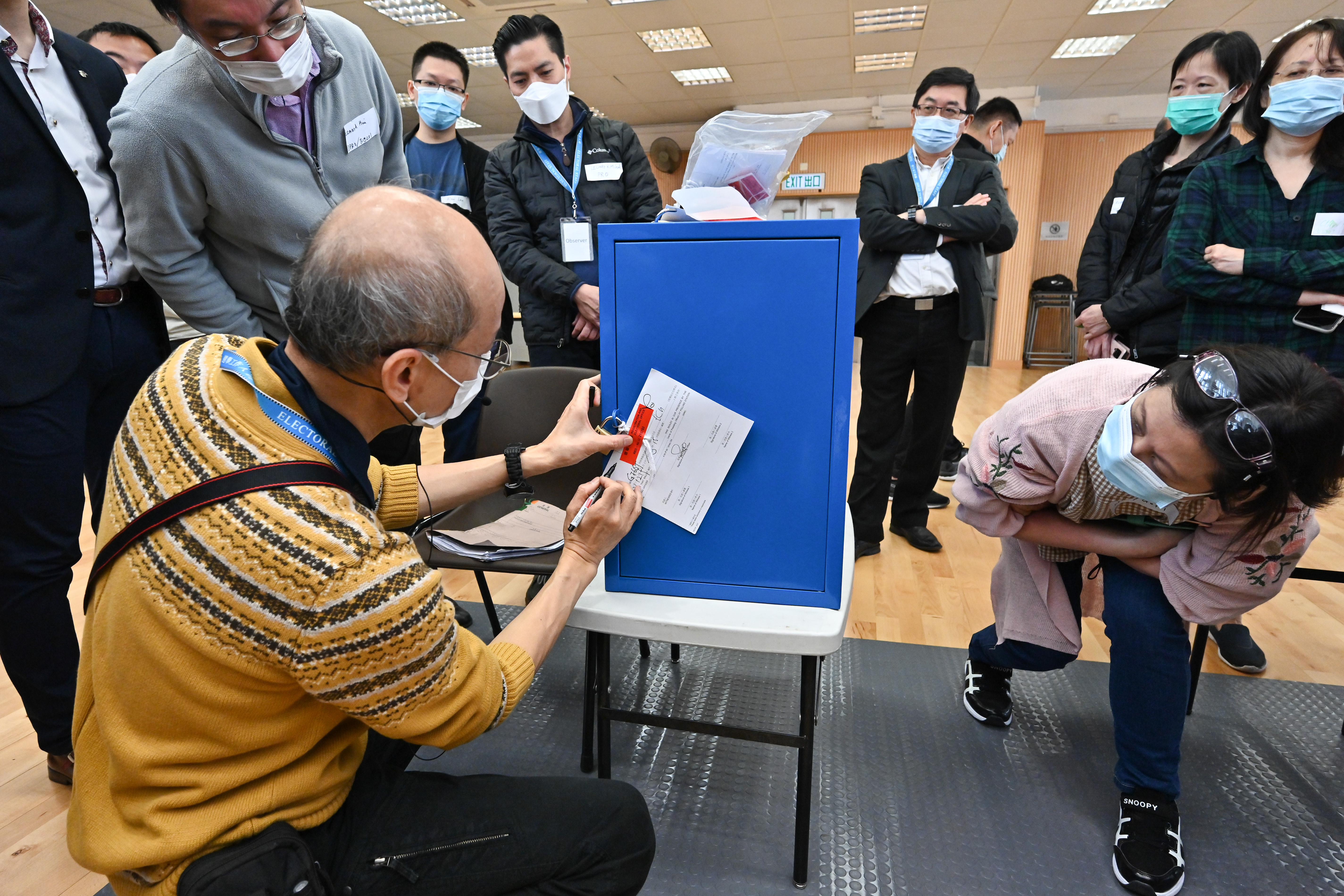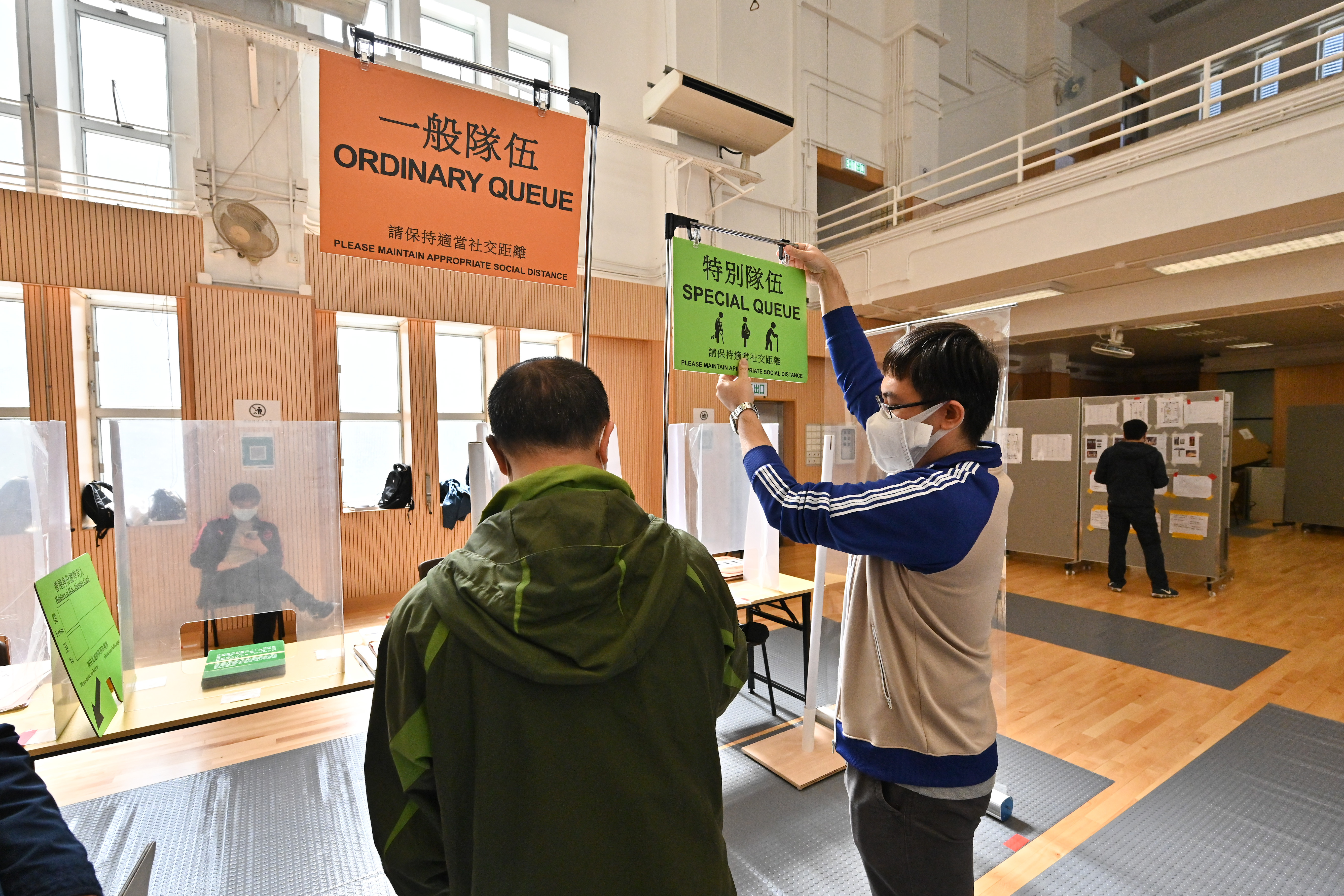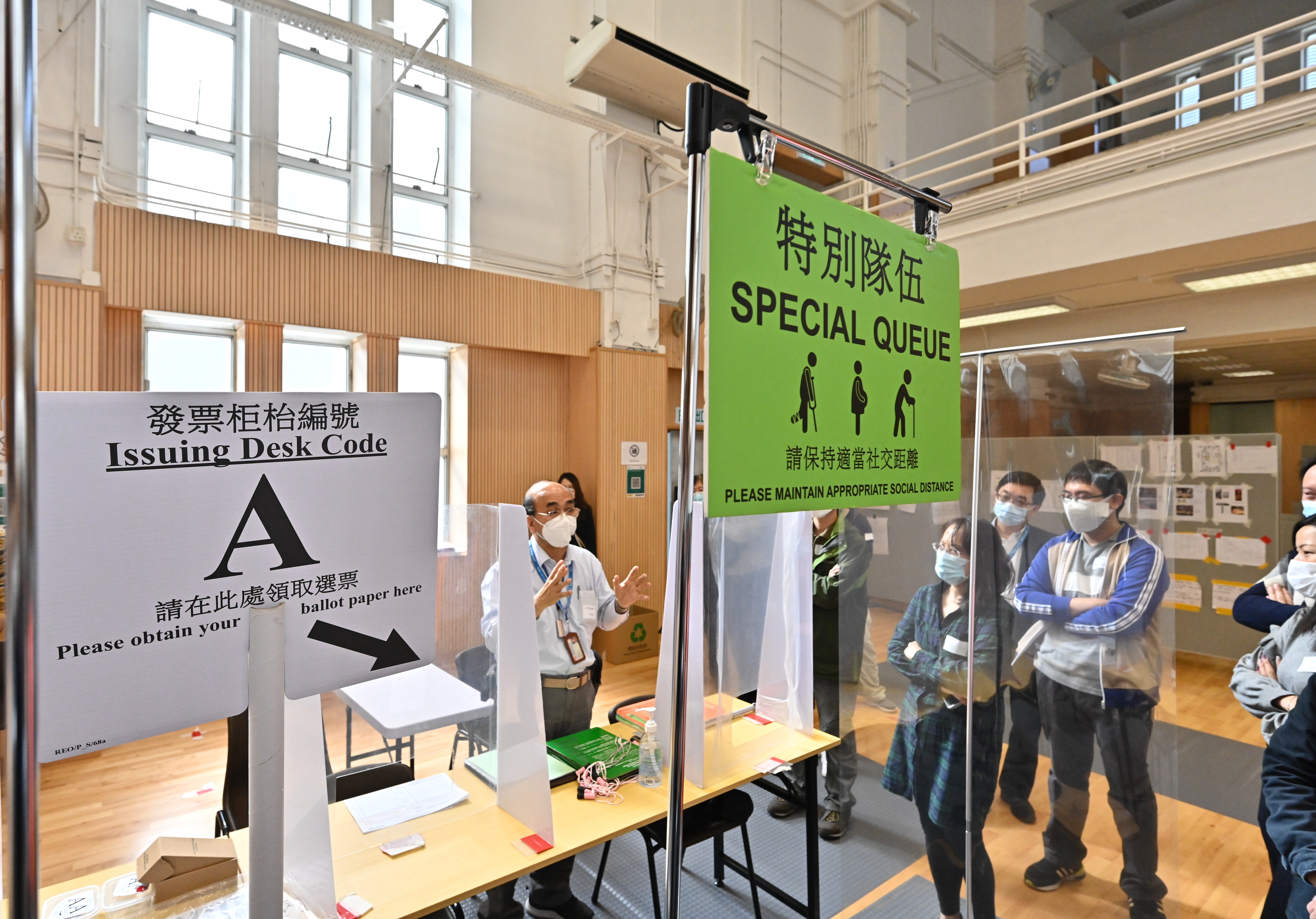 | 選舉事務處人員示範布置投票站。(政府新聞處) |