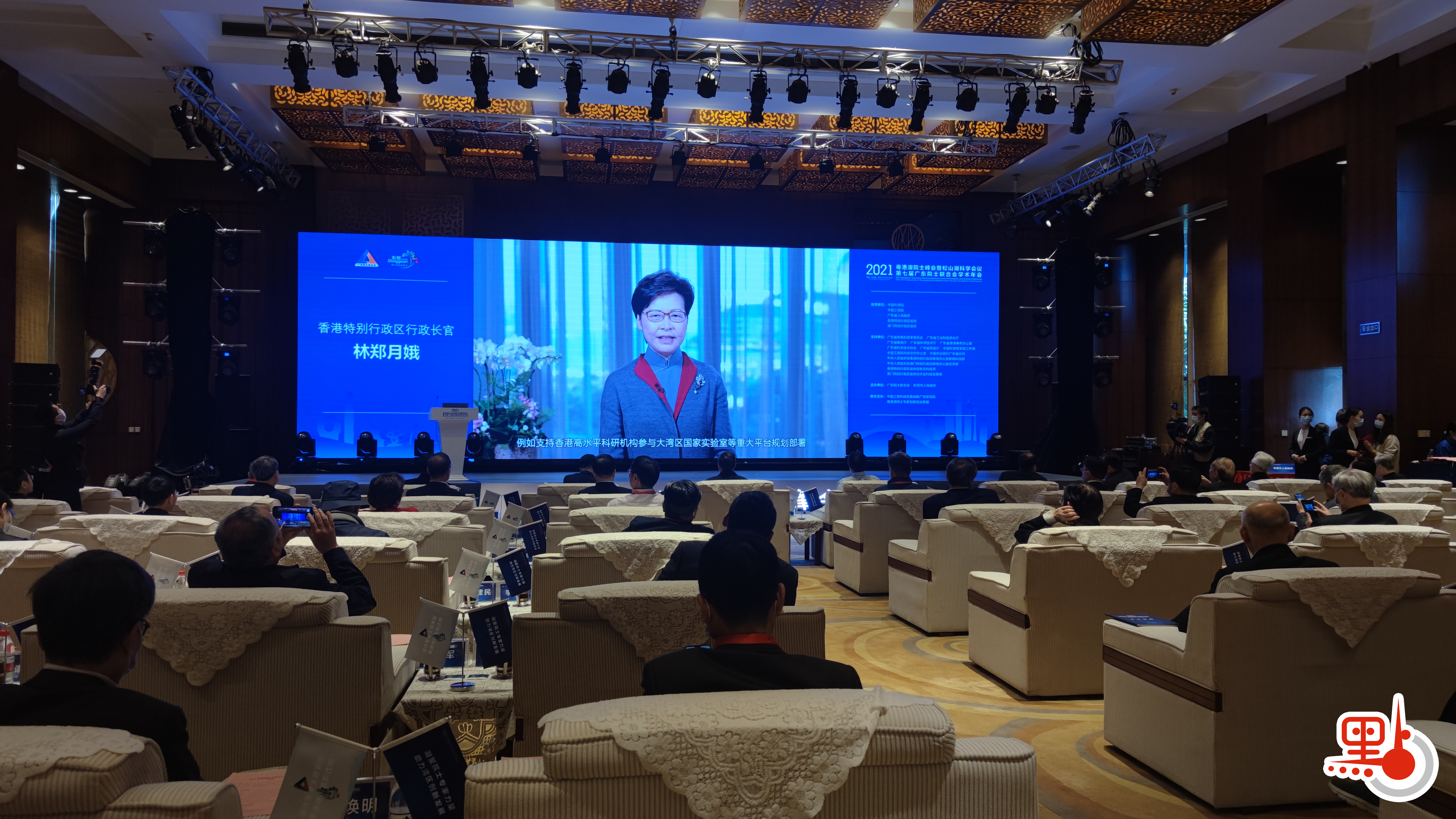 2021粵港澳院士峰會暨松山湖科學會議全體大會今日(1日)在廣東東莞松山湖舉行。本屆峰會以「數智驅動、芯創未來」為主題,共話大灣區科技創新。香港特區行政長官林鄭月娥透過視像致辭表示,香港在國家「十四五」規劃支持下,會以全新思維,全力全速發展創科,融入國家發展大局。過去4年,特區政府投放了超過1,300億元推動創科的發展,用於發展基建、推動科研、培養人才、支援業界等,取得理想的成效。她指出,香港將會保持良好的勢頭,銳意建立更完整的創科生態圈。