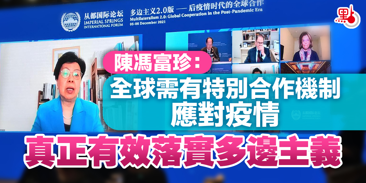 「2021從都國際論壇」今日(6日)在廣州從化進行多場分組討論。在「公共衞生健康與全球合作,打造人類衞生健康共同體」的分組討論中,世界衞生組織前總幹事陳馮富珍透過視頻連線發言表示,新冠疫情將在未來數年重塑全球的生活方式,我們應承擔起責任,打造更公平的未來,認為全球需要特別的合作機制,落實真正有效的多邊主義才能展開合作。陳馮富珍說,後疫情時代,更需要跨部門、跨行業的合作,擁有全局性思維和基於科學的政策。