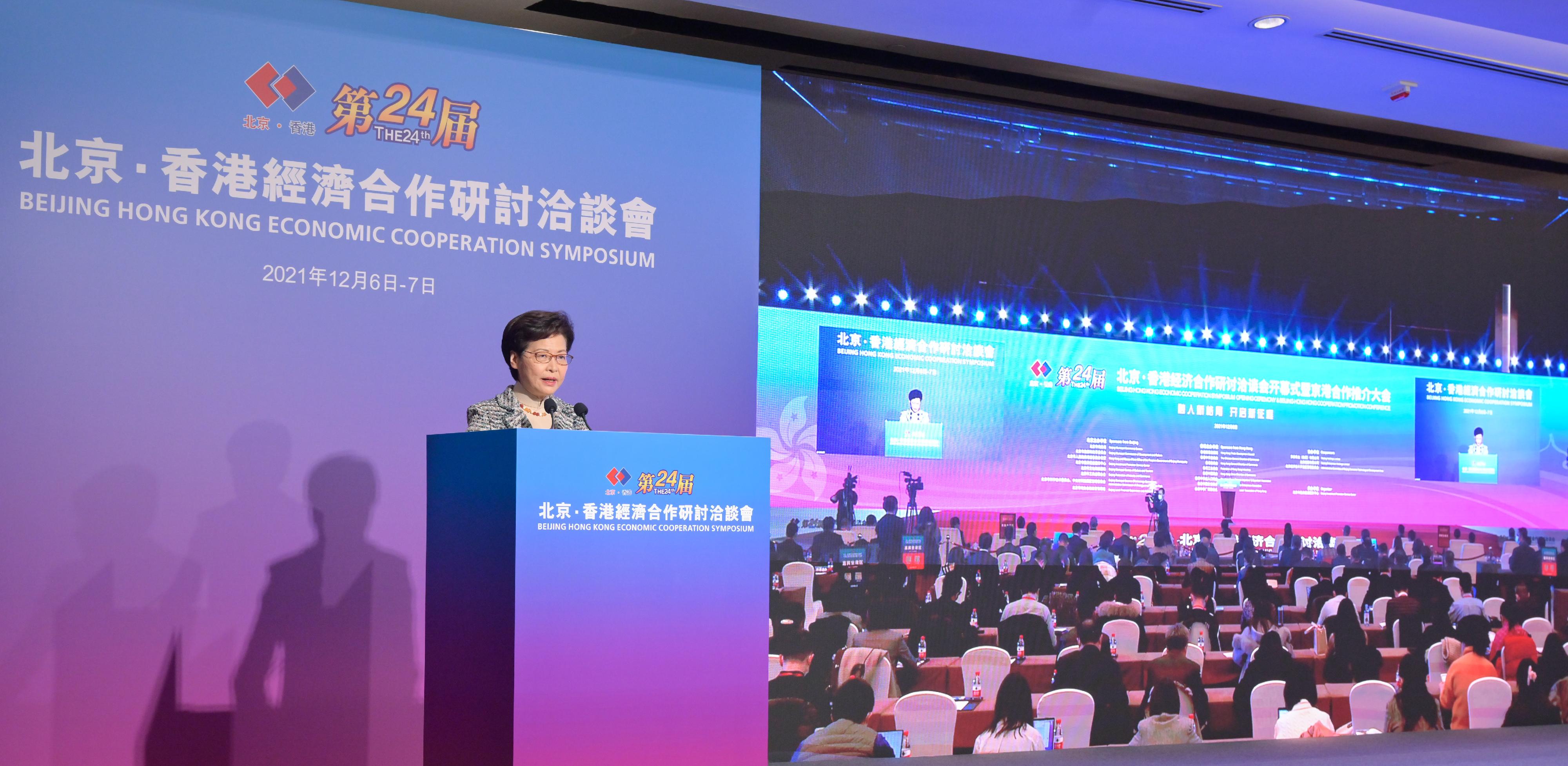 行政長官林鄭月娥今日(6日)出席第24屆北京‧香港經濟合作研討洽談會開幕式致辭。林鄭月娥表示,國家一系列標本兼治的舉措,為「一國兩制」行穩致遠和香港的長期繁榮穩定打下了堅實基礎。北京與香港的合作源遠流長、根基深厚,我期待雙方可以把握這個時機,攜手開拓更好的未來。林鄭月娥期待香港與北京在教育創科、綠色金融,文化藝術交流三方面加強合作。