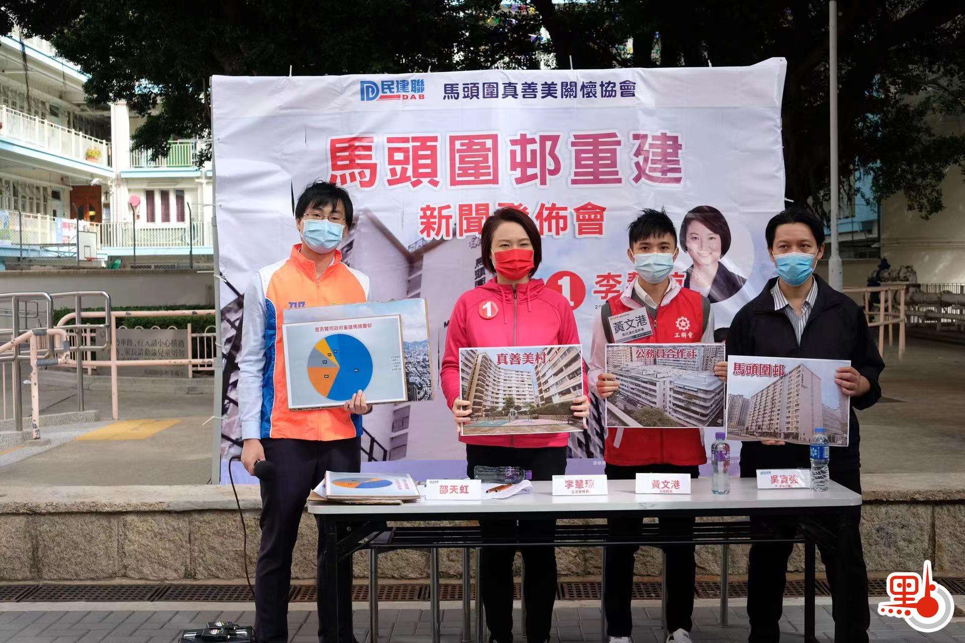 李慧琼續指,有鑑於馬頭圍邨鄰近的真善美村、公務員建屋合作社亦已納入重建計劃,政府應提早就馬頭圍區進行地區性規劃研究,優先評估住屋數量、類型、未來社區的人口及交通需要,為應對未來人口增長,民建聯建議政府將馬頭圍入境處、亞皆老街球場的政府用地進行改劃。為珍惜市區土地資源,盡可能在環境、交通、社區配套共同配合下提升地積比率,加快區內未有升降機的房屋重建工作。