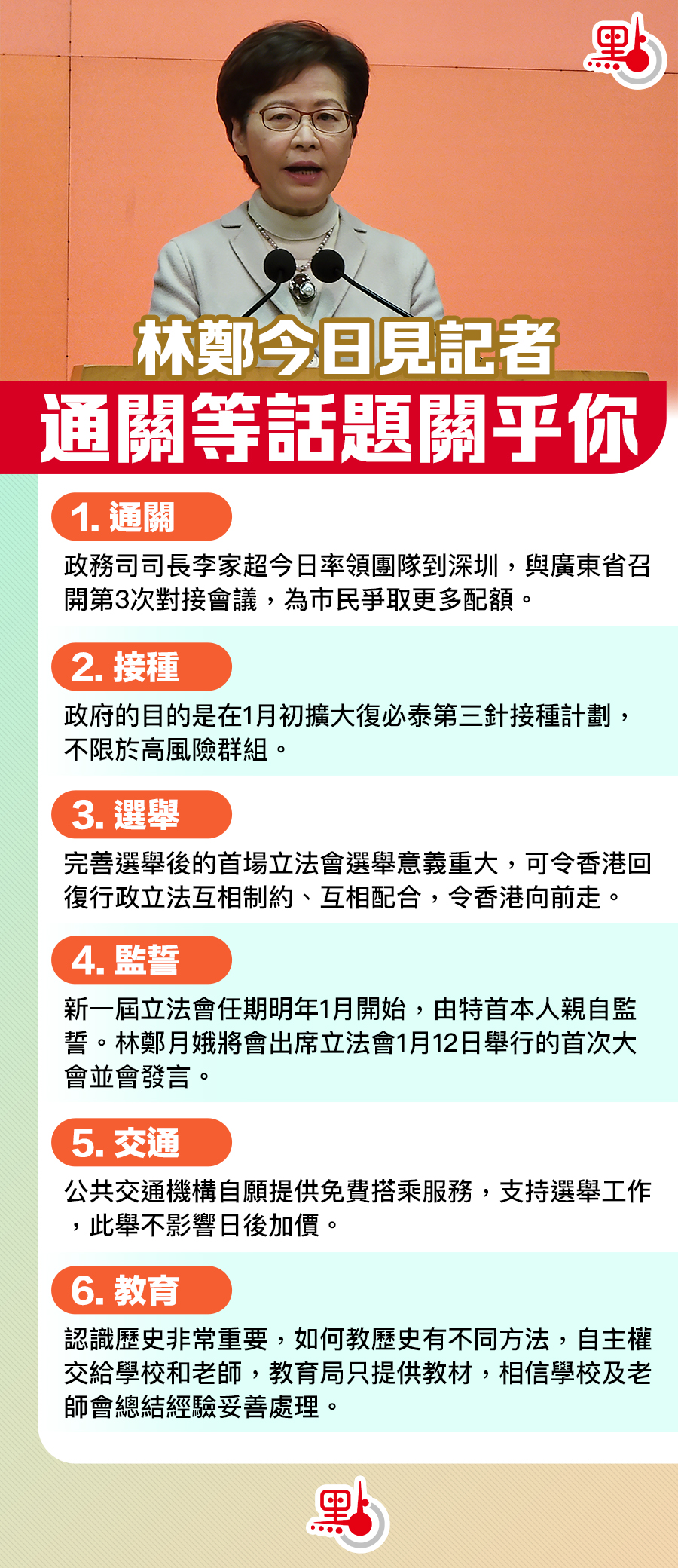 - 一圖|林鄭今日見記者 通關等話題關乎你