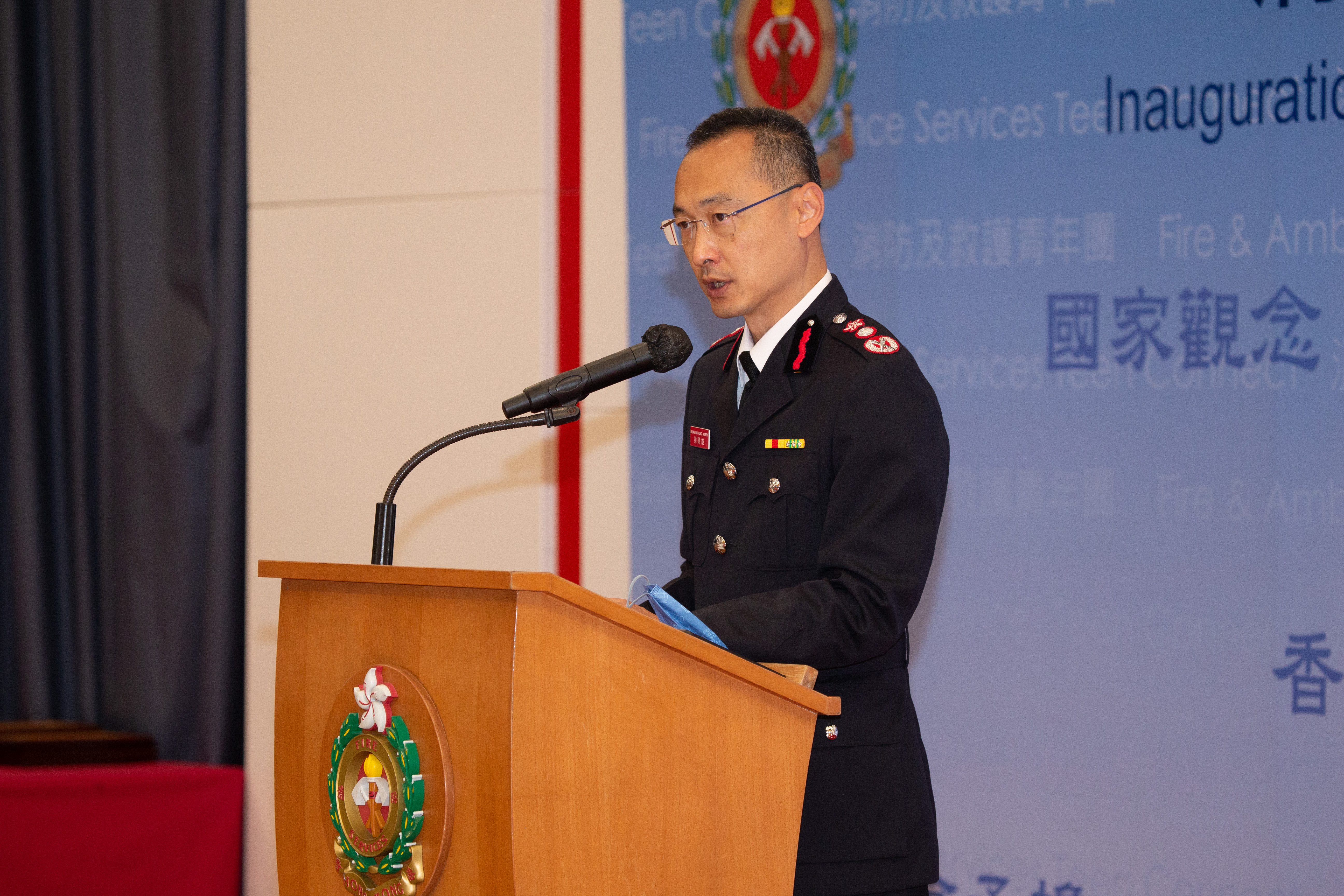梁偉雄在典禮上致辭時表示,消防處一直積極協助推動青年發展,透過各類活動計劃,培育青少年的正向價值觀、抗逆力、合作精神及自律態度,以祈令他們拓闊視野,啟迪潛能。消防處希望透過「消防及救護青年團」舉辦的訓練和活動,豐富青少年的學習及成長經驗,同時讓他們更了解消防處工作,吸引他們將來投身消防及救護行列。