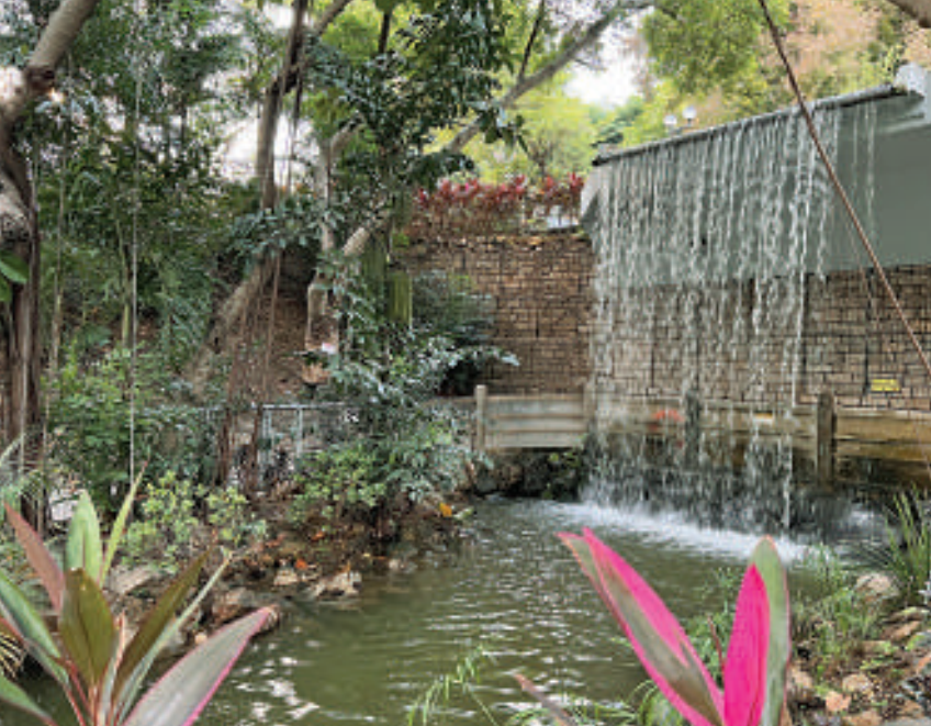 公園為依山而建,設計大多保留了原有的地形和樹木,並且廣植花木,景色優美宜人。而公園更有瀑布花園,內有小橋流水、人工湖和13米高的瀑布。另外,園內還有草地門球場、硬地足球場、兒童遊樂場、健身徑和噴泉廣場等康樂設施,同是消閒遊玩的好去處。