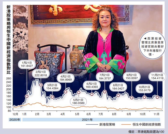 截至2021年11月30日,新港股策略的總回報率達55.6%,同期恒生指數下跌10.8%,恒生中國新經濟指數下滑11.4%,恒生科技指數更勁挫26%。劉央表示,過去一年港股劇烈震盪行情中,新港股策略大幅跑贏其他指數,已獲得市場的廣泛認可。