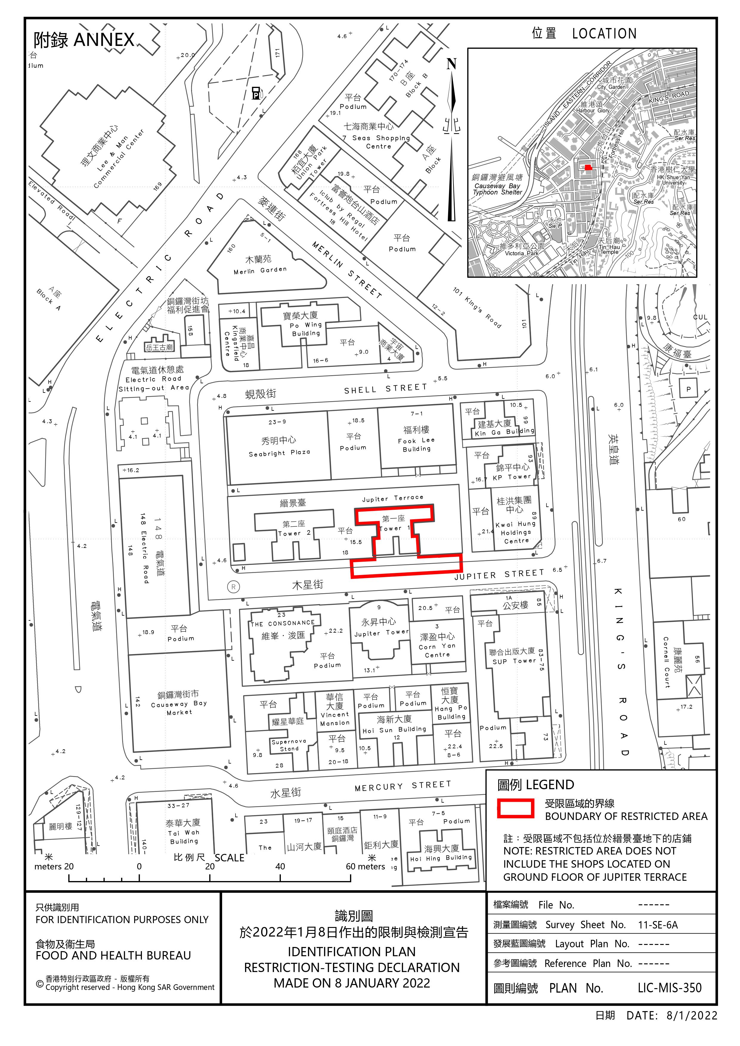 北角雲景道50號富麗園B座方面,受檢人士被要求於今晚11時30分前接受檢測,政府目標是在明日上午約6時30分完成此行動;銅鑼灣木星街18號縉景臺方面,受檢人士被要求於明日凌晨零時前接受檢測,則是在明日上午約7時完成此行動。