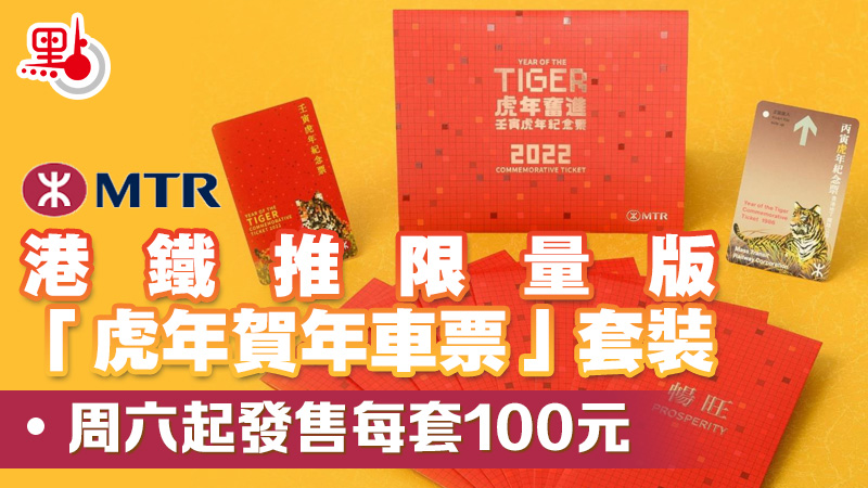 港鐵今日(10日)宣布,為慶祝壬寅虎年來臨,推出限量版「虎年賀年車票」套裝,每套車票套裝售價為港幣100元,內含2張車票、一個票套和8個紅色利是封,將於本周六(15日)公開發售。
