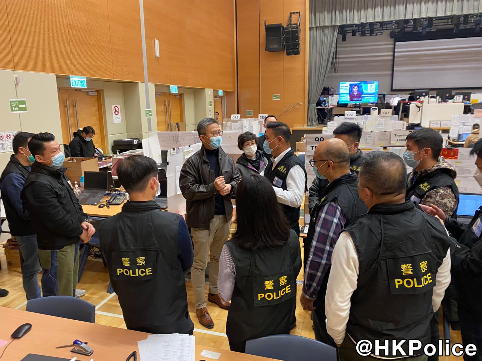 今日(3日)大年初三,警務處處長蕭澤頤探訪執勤的抗疫同事及義工和刑偵人員。蕭澤頤到旺角和啓德個案追蹤辦公室,探訪進行抗疫和個案追蹤的同事和退休義工;以及為西九龍總區總部日夜兼程調查「童樂居」案的刑偵人員打氣,感謝同事堅守崗位,恪盡職守。
