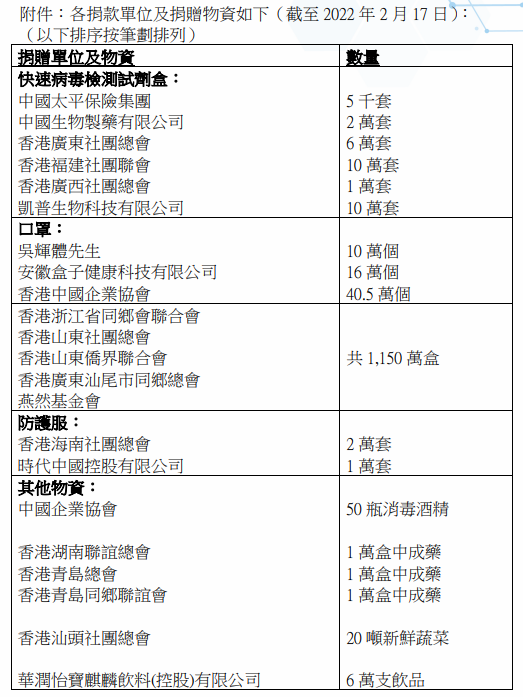 同心抗疫|社會各界積極捐出逾百萬抗疫物資